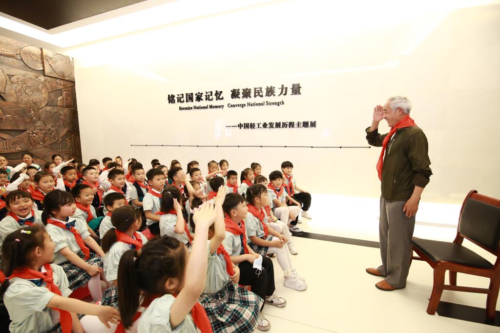 會(huì)上,與會(huì)嘉賓分別為新入隊(duì)的少先隊(duì)員系上紅領(lǐng)巾,并為受表彰的“西安市優(yōu)秀少先隊(duì)員”“西安市優(yōu)秀少先隊(duì)輔導(dǎo)員”“西安市優(yōu)秀少先隊(duì)集體”和校外輔導(dǎo)員代表頒發(fā)獎(jiǎng)牌和聘書(shū)。入隊(duì)儀式結(jié)束后,80名新入隊(duì)少先隊(duì)員在我校中國(guó)輕工業(yè)博物館開(kāi)展了“主題隊(duì)日實(shí)踐打卡爭(zhēng)章活動(dòng)”,活動(dòng)現(xiàn)場(chǎng)邀請(qǐng)我校西遷親歷者狄儉忠教授為學(xué)生們講述西遷故事,通過(guò)生動(dòng)的口述加現(xiàn)場(chǎng)互動(dòng)體驗(yàn)讓學(xué)生在情境中深刻體悟西遷前輩的胸懷大局、無(wú)私奉獻(xiàn)的精神。