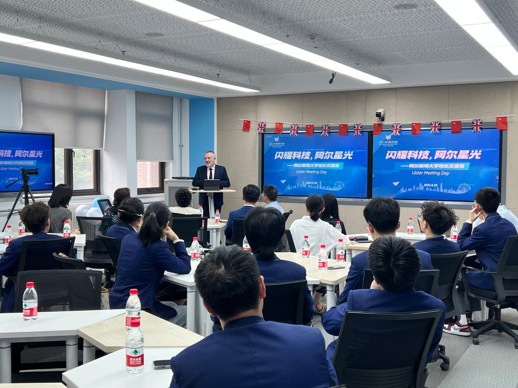 6月20日下午,阿爾斯特學(xué)院在C325智慧教室舉行“閃耀科技,阿爾星光”阿爾斯特大學(xué)校長與畢業(yè)生見面會。阿爾斯特大學(xué)副校長Paul Seawright,校國際合作與交流處處長張素風(fēng),阿爾斯特學(xué)院常務(wù)副院長薛朝華、國際處及學(xué)院相關(guān)工作人員、2023屆畢業(yè)生及2023年赴英聯(lián)合培養(yǎng)學(xué)生代表出席會議。