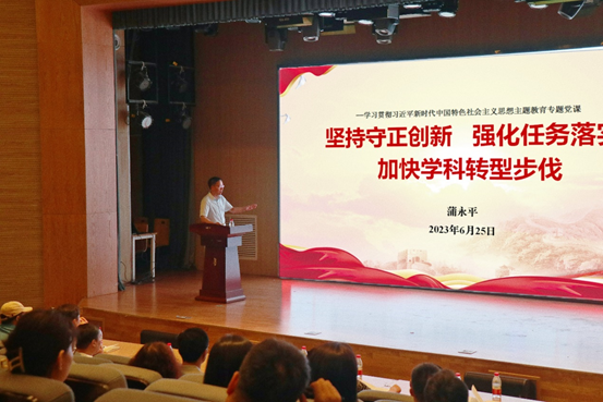 6月25日下午,副校長蒲永平以《堅持守正創(chuàng)新,強化任務(wù)落實,加快學科轉(zhuǎn)型步伐》為題,為分管(聯(lián)系)單位黨員講授主題教育專題黨課。