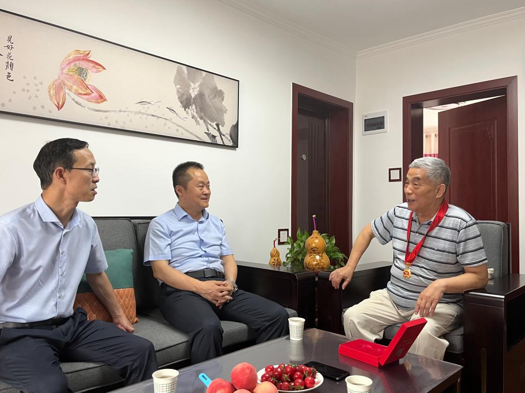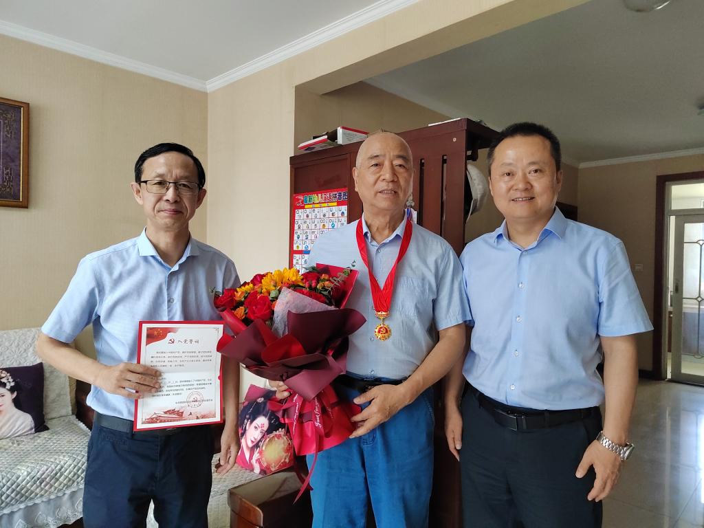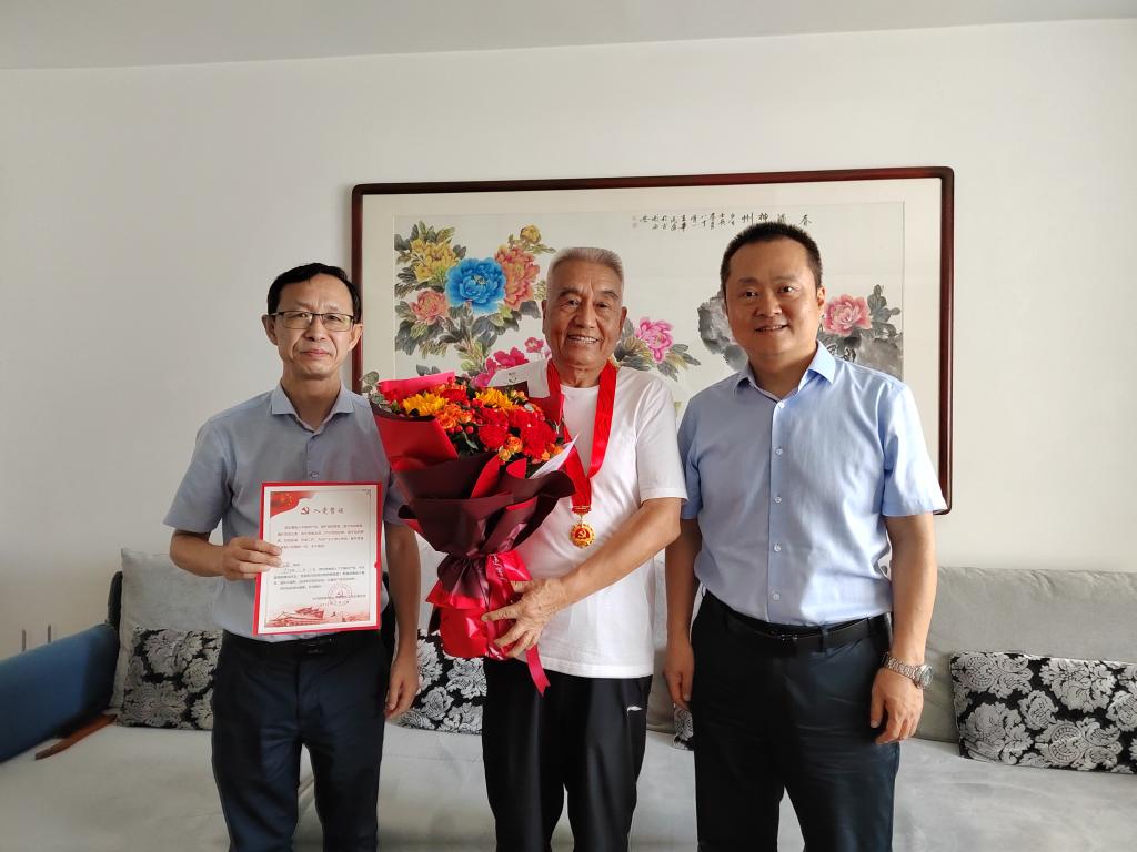 在慶祝中國(guó)共產(chǎn)黨成立102周年前夕,校黨委委員、副校長(zhǎng)李學(xué)軍在離退處黨委班子成員陪同下,到我?!肮鈽s在黨50年”老黨員家中看望問(wèn)候老黨員,為他們頒發(fā)“光榮在黨50年”紀(jì)念章。為老黨員送去黨組織的親切關(guān)懷,并向他們致以崇高敬意。