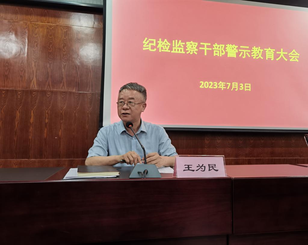 為深入學(xué)習(xí)貫徹習(xí)近平總書記關(guān)于加強紀檢監(jiān)察干部隊伍建設(shè)的重要講話精神,教育引導(dǎo)紀檢監(jiān)察干部以案為鑒、以案自警,以更高標準、更嚴要求增強紀律規(guī)矩意識,7月3日,學(xué)校召開紀檢監(jiān)察干部警示教育大會,校黨委副書記、紀委書記、監(jiān)察專員王為民出席并講話。