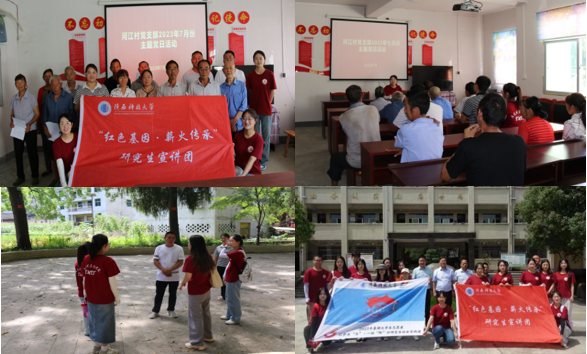 陜西科技大學(xué)紅色基因·薪火傳承研究生宣講團(tuán)與張家寨鎮(zhèn)河江村村委會聯(lián)合開展主題黨日活動,圍繞基層黨建進(jìn)行實(shí)地調(diào)研和宣講。在宣講活動中,宣講團(tuán)成員深入田間地頭,與村民促膝交談,將理論知識與社會實(shí)踐相結(jié)合,以交流互動的宣講方式,了解黨員群眾對于家鄉(xiāng)發(fā)展的感悟,真正做到實(shí)踐一方,服務(wù)一方,為我國全面推進(jìn)鄉(xiāng)村振興承擔(dān)起青年責(zé)任。