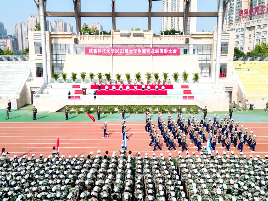 9月8日,我校2023級大學(xué)生軍事訓(xùn)練總結(jié)表彰大會(huì)在標(biāo)準(zhǔn)田徑場舉行。4000余名陜科大2023級學(xué)子奕奕神采、豪情滿懷,以昂揚(yáng)的斗志、飽滿的精神展示了10天的軍訓(xùn)成果。校黨委副書記郭強(qiáng)、副校長蒲永平及軍訓(xùn)團(tuán)各部門負(fù)責(zé)人、各營教導(dǎo)員出席大會(huì)。大會(huì)由武裝部部長張凱凱主持。