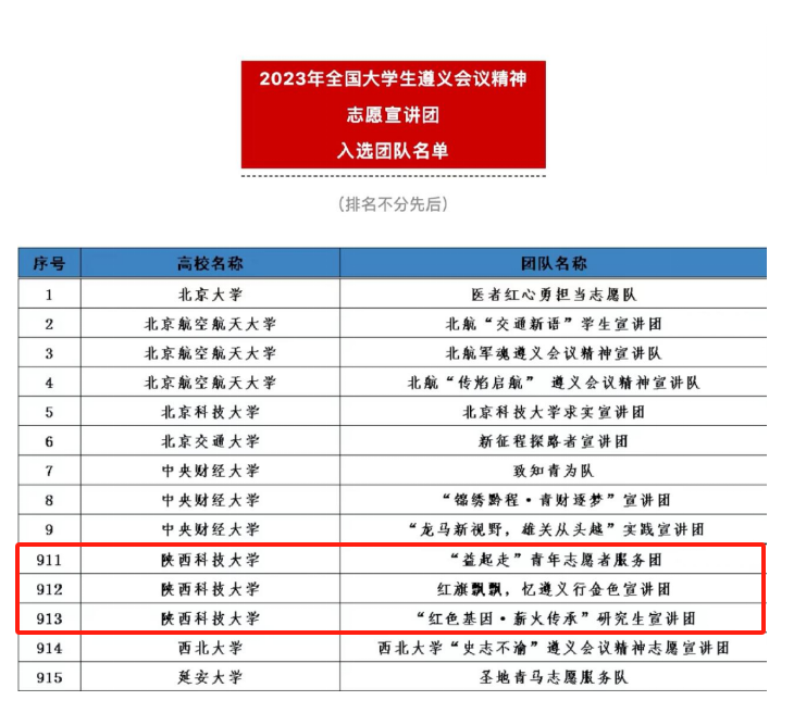 為全面學(xué)習(xí)貫徹黨的二十大精神,深入貫徹落實(shí)習(xí)近平總書記提出的“傳承紅色基因、講好遵義故事”的重要要求,團(tuán)中央青年志愿者行動(dòng)指導(dǎo)中心、中共遵義市委、共青團(tuán)貴州省委近日聯(lián)合發(fā)布了《關(guān)于遴選2023年全國(guó)大學(xué)生遵義會(huì)議精神志愿宣講團(tuán)的公告》。此次活動(dòng)校團(tuán)委積極響應(yīng),組織參與,我?!耙嫫鹱咔嗄曛驹刚叻?wù)團(tuán)”“紅旗飄飄,憶遵義行金色宣講團(tuán)”“紅色基因薪火傳承研究生宣講團(tuán)”三支隊(duì)伍入選2023年全國(guó)大學(xué)生遵義會(huì)議精神志愿宣講團(tuán)。