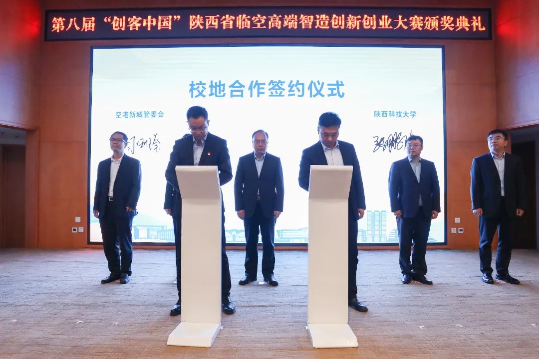 10月27日,第八屆“創(chuàng)客中國(guó)”陜西省臨空高端制造中小企業(yè)創(chuàng)新創(chuàng)業(yè)大賽頒獎(jiǎng)典禮暨秦創(chuàng)原校地合作簽約儀式活動(dòng)在空港新城舉行。我校前沿與科學(xué)技術(shù)轉(zhuǎn)移研究院副院長(zhǎng)張鵬偉代表學(xué)校與空港新城簽訂戰(zhàn)略合作框架協(xié)議,新型顯示重點(diǎn)產(chǎn)業(yè)鏈成果轉(zhuǎn)化創(chuàng)新團(tuán)隊(duì)負(fù)責(zé)人張方暉與空港新城管委會(huì)簽訂科轉(zhuǎn)項(xiàng)目協(xié)議??崭坌鲁屈h委副書(shū)記劉軍、西咸新區(qū)科技創(chuàng)新和新經(jīng)濟(jì)局副局長(zhǎng)韓萍、秦創(chuàng)原創(chuàng)新促進(jìn)中心副主任徐霄龍等出席活動(dòng)。