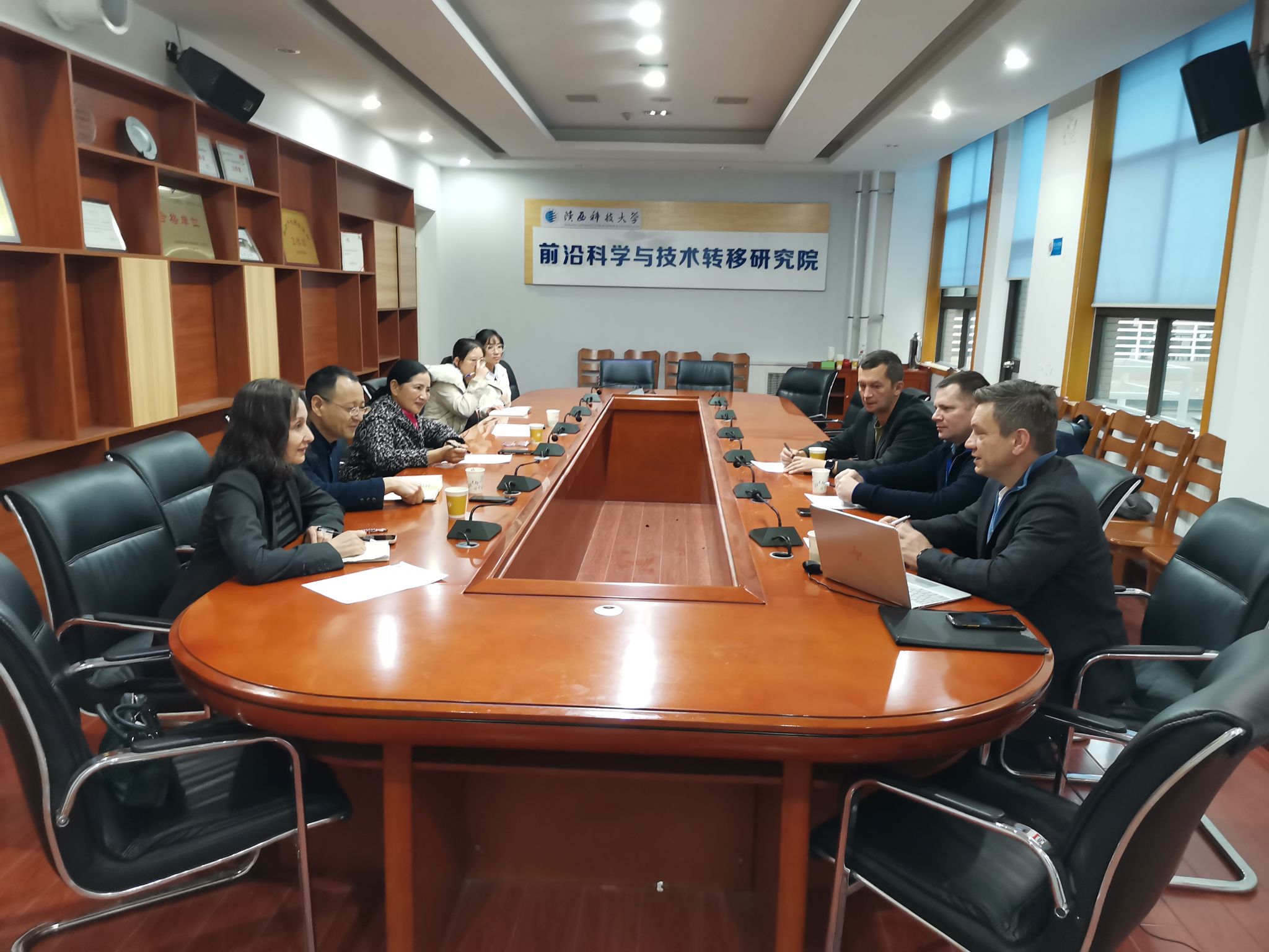 為進(jìn)一步促進(jìn)產(chǎn)學(xué)研國際開放交流合作,受我校前沿院邀請(qǐng),俄羅斯烏拉爾國立大學(xué)教授謝爾蓋·斯蔑勒腦夫、俄羅斯克里木生物技術(shù)公司總經(jīng)理安德烈.特洛菲莫夫、俄羅斯佛拉琉科斯公司總經(jīng)理阿爾卡季.亞薩什內(nèi)一行3人赴我校交流洽談產(chǎn)學(xué)研國際合作。此次交流是繼今年9月首次交流后雙方再次深化互利合作的具體實(shí)踐,推動(dòng)雙方合作交流再上新臺(tái)階。前沿科學(xué)與技術(shù)轉(zhuǎn)移研究院常務(wù)副院長(zhǎng)強(qiáng)濤濤、陜西省腐植酸農(nóng)業(yè)生態(tài)修復(fù)工程技術(shù)研究中心負(fù)責(zé)人牛育華,前沿院科室負(fù)責(zé)人及輕工科學(xué)與工程學(xué)院相關(guān)研究生參加了會(huì)議。