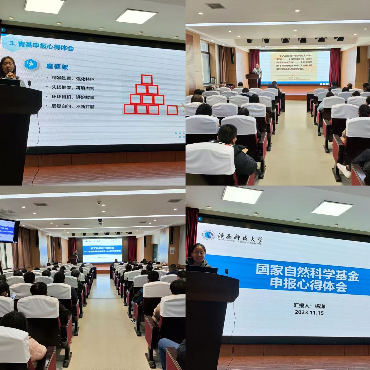 11月15日下午,輕工科學與工程學院(柔性電子學院)召開了2024年國家自然科學基金申報工作動員會,副校長黃劍鋒出席會議,學院班子成員及全體申報教師參加了會議。會議由輕工學院副院長劉國棟主持。