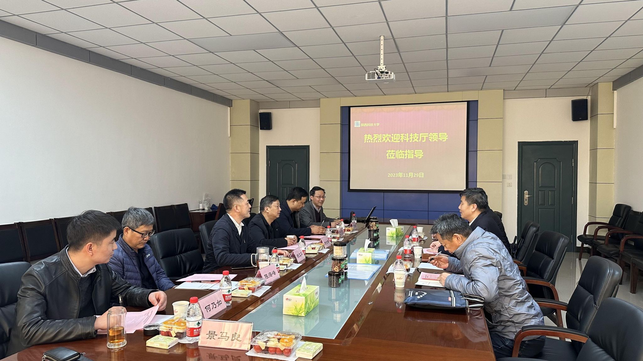 11月29日下午,陜西省委科技工委委員、省科技廳二級巡視員郭杰,省科技廳二級調研員汪德亮,省科技廳二級主任科員白東海等一行三人來我校,就我校申報的“陜西省農(nóng)產(chǎn)資源干燥加工及綜合利用工程技術研究中心”(以下簡稱工程技術研究中心)建設工作進行考察。副校長黃劍鋒會見來賓并出席考察會議,科技處處長助理徐衛(wèi)濤、機電工程學院(智能制造與機器人工程學院)副院長楊立軍、工程技術研究中心負責人袁越錦及相關教師代表參加了考察會,會議由楊立軍主持。