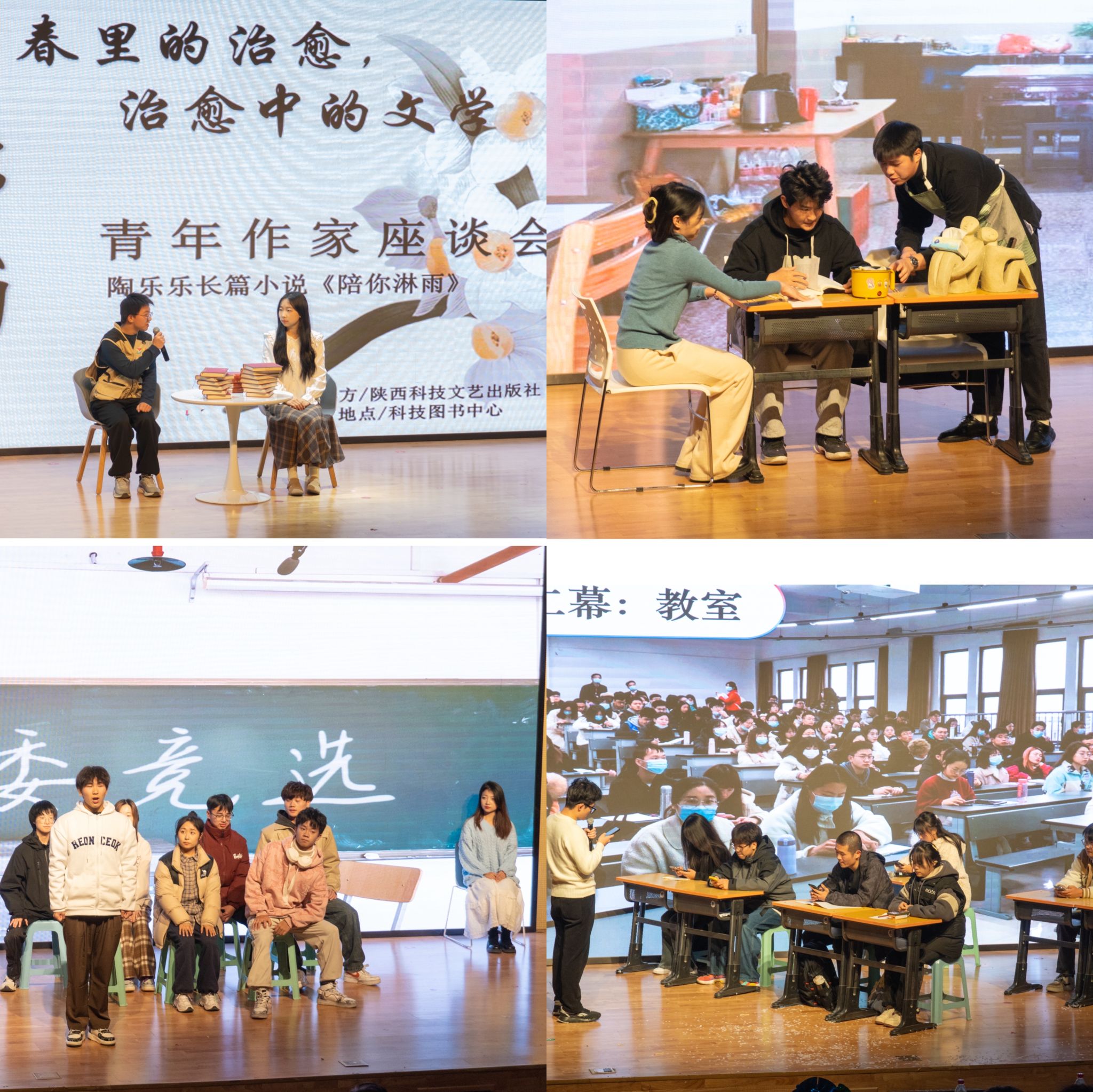 12月3日,為推動(dòng)心理健康知識(shí)科普宣傳,豐富活動(dòng)載體,營造濃厚的校園心理健康教育氛圍,由學(xué)工部學(xué)生潛能發(fā)展中心主辦、電子信息與人工智能學(xué)院承辦的“‘劇’焦心靈 點(diǎn)亮青春”陜西科技大學(xué)首屆校園心理情景劇大賽順利舉行。學(xué)工部部長張凱凱致辭。陜西省高校心理素質(zhì)教育研究會(huì)會(huì)長鄭林科、長安大學(xué)心理中心副主任張石磊、學(xué)工部學(xué)生潛能發(fā)展中心教師王慧芳、張易,化學(xué)與化工學(xué)院心理健康專項(xiàng)輔導(dǎo)員張楊擔(dān)任評(píng)委。