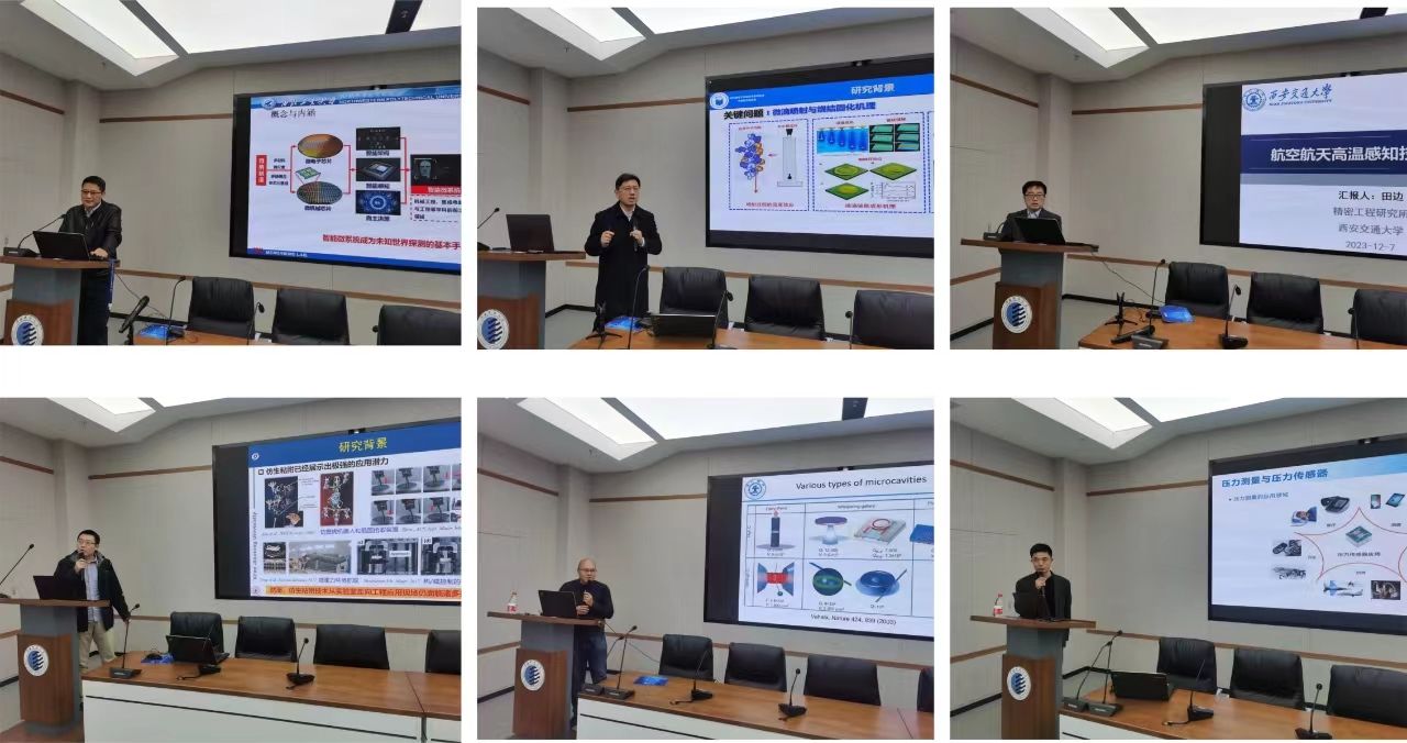 下午的3場主題報告分別由西安交通大學國家級青年人才田洪淼教授、西安交通大學寬禁帶半導體與量子器件研究所副所長李峰教授、西安思微傳感科技有限公司研發(fā)部部長徐林鵬高級工程師作了《微納仿生粘附結構設計、制造及其應用》《曲面微腔光子動力學中的穩(wěn)定與混沌現(xiàn)象》和《MEMS壓力傳感器核心技術應用》的主題報告。