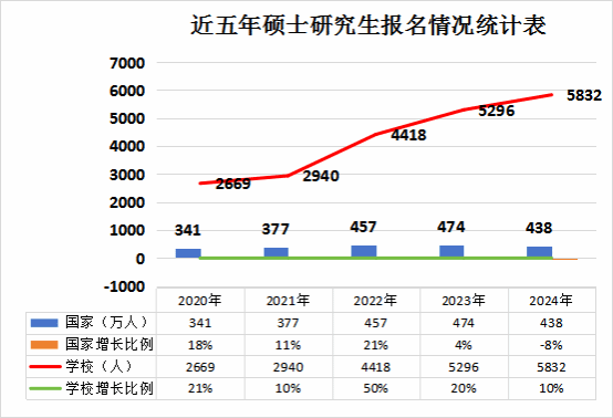 報考規(guī)模逆勢上揚,生源質(zhì)量持續(xù)提升。2024年全國共計5832人報考我校碩士研究生,報考生源涉及全國31個省市自治區(qū),512個考點,報考規(guī)模較2023年增長10%,報考人數(shù)在全國報考規(guī)模降低36萬的情況下持續(xù)快速增長、再創(chuàng)新高。經(jīng)統(tǒng)計,2024年報考生源中應(yīng)屆本科畢業(yè)生3433人,較2023年增長18%,報考生源質(zhì)量持續(xù)提升。