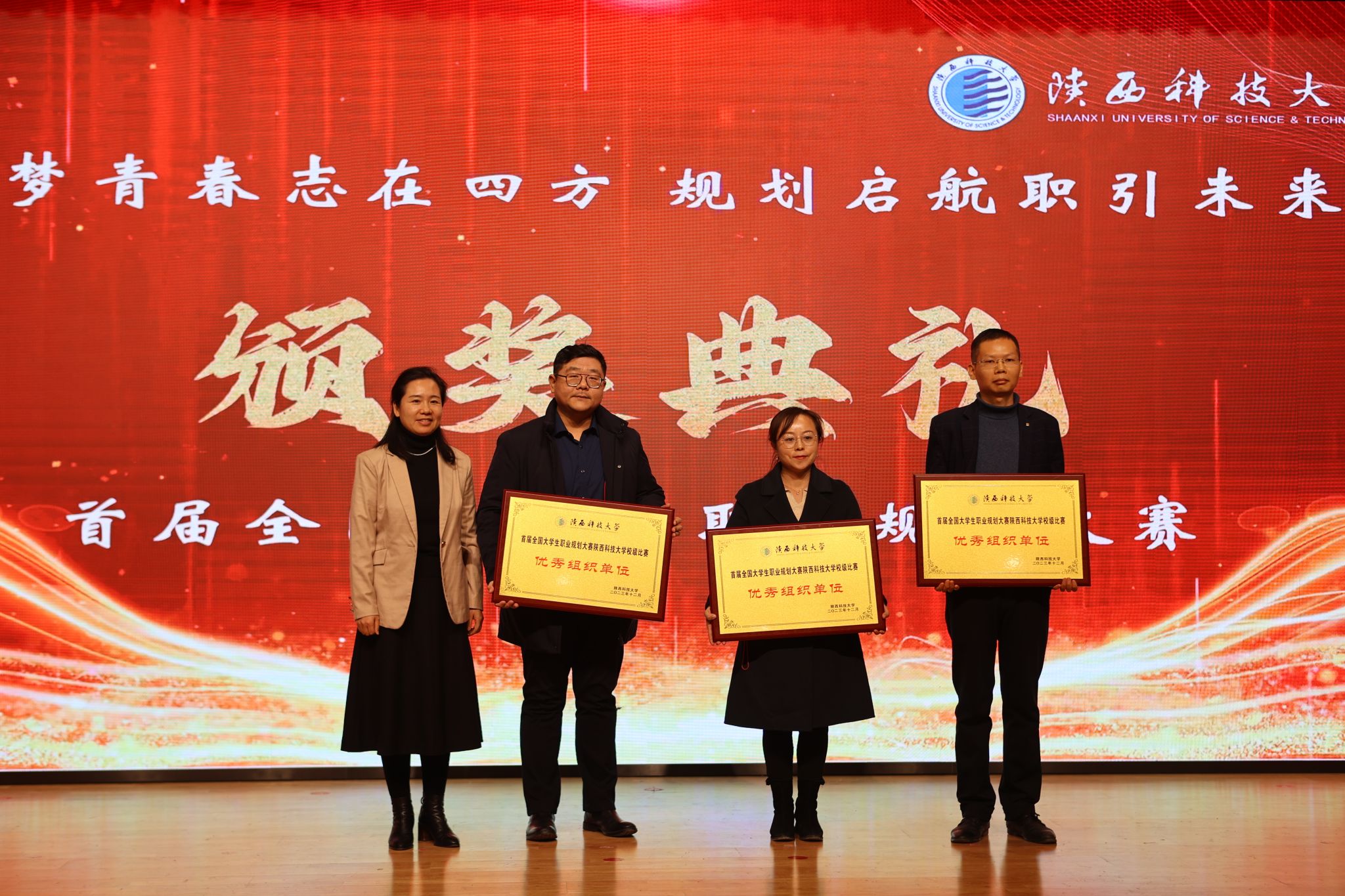 為進(jìn)一步增強(qiáng)學(xué)生生涯規(guī)劃意識(shí),科學(xué)規(guī)劃大學(xué)生活,提早做好就業(yè)準(zhǔn)備,促進(jìn)畢業(yè)生高質(zhì)量充分就業(yè),根據(jù)《教育部關(guān)于舉辦首屆全國(guó)大學(xué)生職業(yè)規(guī)劃大賽的通知》(教學(xué)函〔2023〕1號(hào)),12月15日,以“筑夢(mèng)青春志在四方,規(guī)劃啟航職引未來(lái)”為主題的全國(guó)首屆大學(xué)生職業(yè)規(guī)劃大賽陜西科技大學(xué)校級(jí)選拔賽在人文樓小劇場(chǎng)成功舉辦。學(xué)工部、設(shè)計(jì)與藝術(shù)學(xué)院(絲路文化與傳播學(xué)院)、電氣與控制工程學(xué)院相關(guān)負(fù)責(zé)人以及各學(xué)院學(xué)生工作負(fù)責(zé)人、選手指導(dǎo)老師共同參加了頒獎(jiǎng)典禮。
