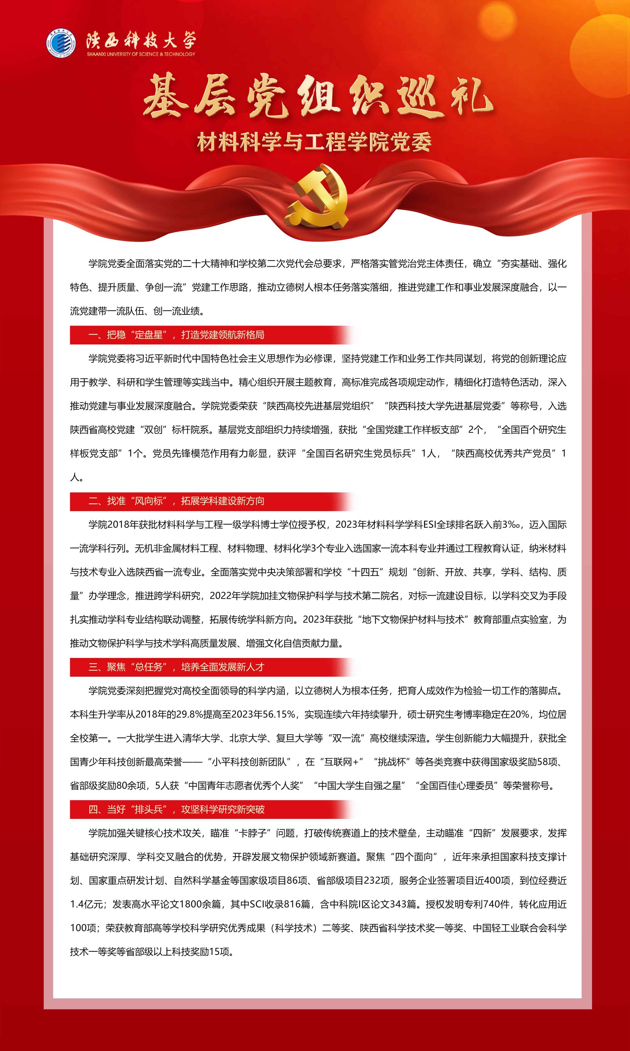 編者按:在中國共產(chǎn)黨陜西科技大學第三次代表大會召開之際,學校特別推出“發(fā)展成就巡禮”系列報道,全方位展示我校第二次黨代會以來取得的事業(yè)發(fā)展成就,進一步激勵全校黨員、干部和師生員工凝心聚力謀新篇,團結奮進創(chuàng)一流,以務實的工作作風、嚴謹?shù)墓ぷ鲬B(tài)度、良好的精神面貌、扎實的工作業(yè)績,喜迎學校第三次黨代會勝利召開。