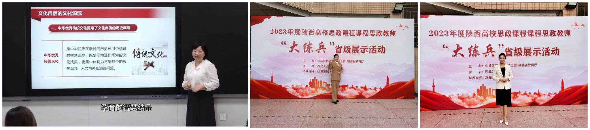 2023年度陜西高校思政課程、課程思政教師“大練兵”活動通過校級選拔、省級網(wǎng)絡評審、現(xiàn)場展示、專家提問等環(huán)節(jié)進行了省級評選;現(xiàn)場展示同時向全省高校開通線上直播。在活動中,我校教師充分展示了鮮明的政治立場、扎實的學術理論功底、精湛的教學藝術。在主題選取、課程導入、案例選擇、內容設置、課件設計、學理支撐等方面都有著優(yōu)異的表現(xiàn),展示了我校教師隊伍良好的教學能力和自信的精神面貌。