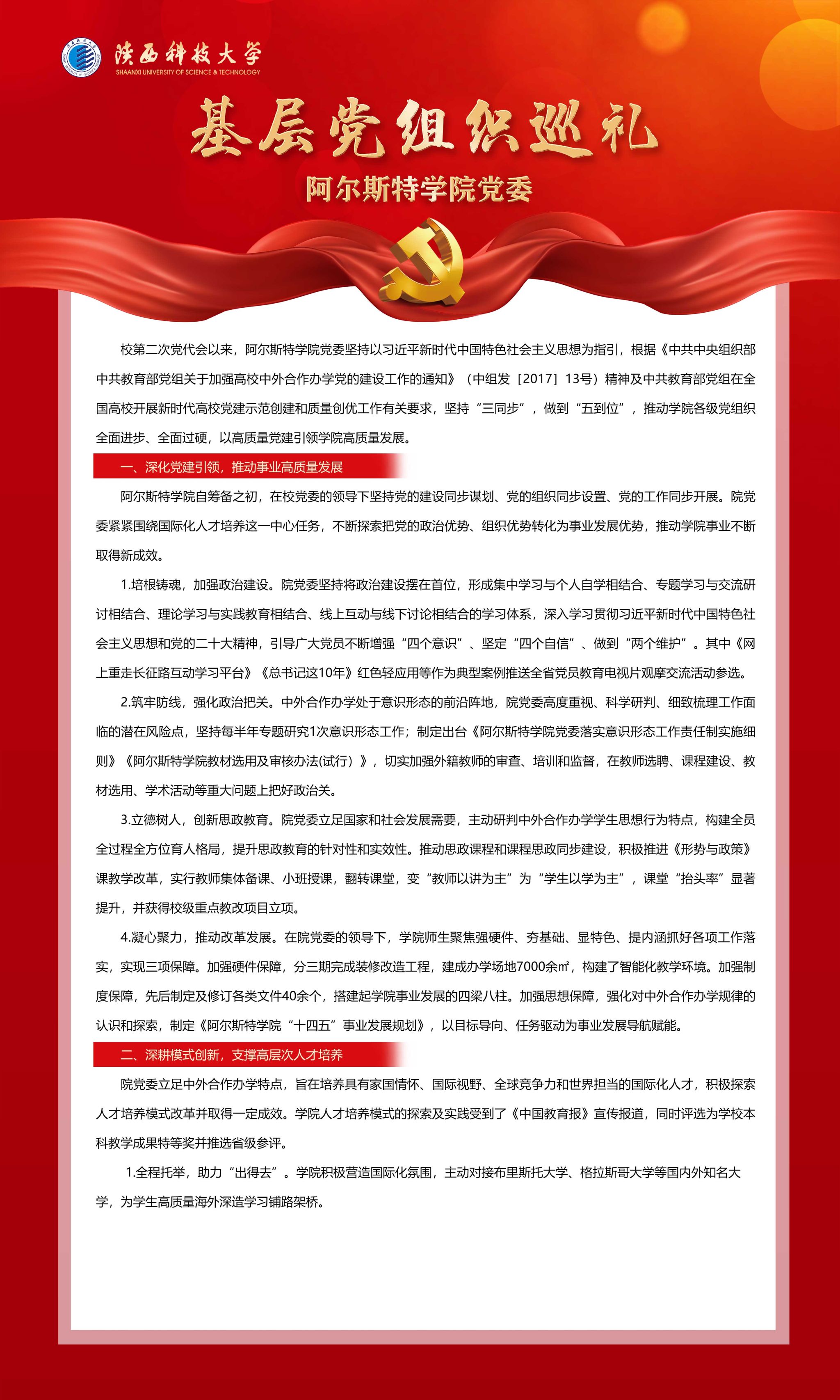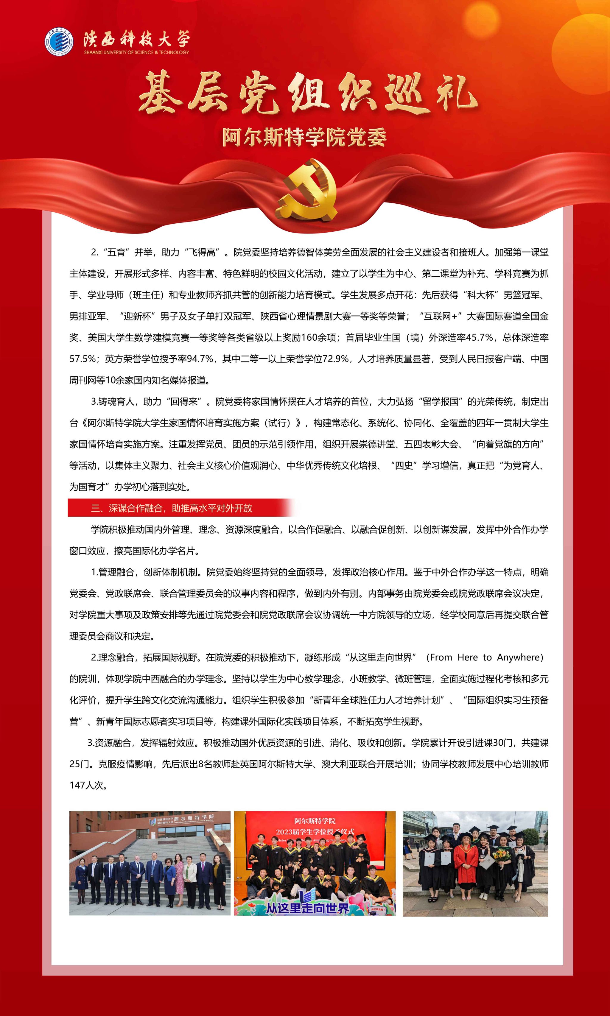 編者按:在中國(guó)共產(chǎn)黨陜西科技大學(xué)第三次代表大會(huì)召開(kāi)之際,學(xué)校特別推出“發(fā)展成就巡禮”系列報(bào)道,全方位展示我校第二次黨代會(huì)以來(lái)取得的事業(yè)發(fā)展成就,進(jìn)一步激勵(lì)全校黨員、干部和師生員工凝心聚力謀新篇,團(tuán)結(jié)奮進(jìn)創(chuàng)一流,以務(wù)實(shí)的工作作風(fēng)、嚴(yán)謹(jǐn)?shù)墓ぷ鲬B(tài)度、良好的精神面貌、扎實(shí)的工作業(yè)績(jī),喜迎學(xué)校第三次黨代會(huì)勝利召開(kāi)。