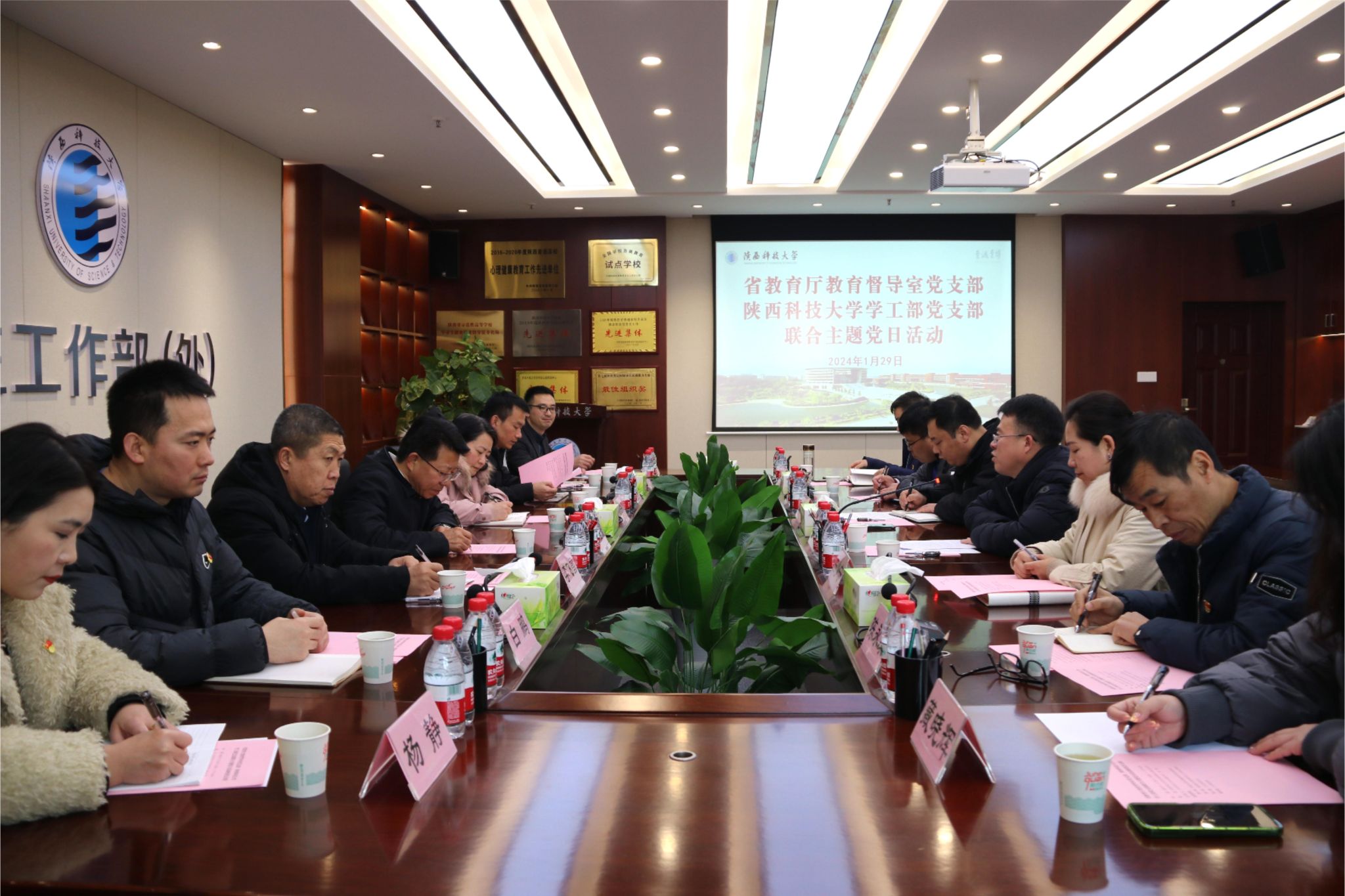 王恒斌向我校同志介紹了教育督導(dǎo)督政、督學(xué)、評估監(jiān)測的督導(dǎo)職能和教育督導(dǎo)工作的方式、特點,他指出近年來陜西科技大學(xué)在人才培養(yǎng)、科學(xué)研究、社會服務(wù)、文化傳承、國際交流合作等方面均取得了突出成績,特別是學(xué)校在傳承紅色基因、創(chuàng)新人才培養(yǎng)、推動文化傳承等方面走在了前列,通過實地參觀真切地感受到學(xué)校濃厚的思政育人氛圍。他指出陜西科技大學(xué)學(xué)工部黨支部是教育部首批黨建“雙創(chuàng)”樣板支部,教育督導(dǎo)室黨支部連續(xù)三年被省直機關(guān)工委評為五星級黨支部,兩個黨支部聯(lián)合開展主題黨日活動可謂是“強強聯(lián)合”,希望兩個支部以此次活動為契機,進一步擴大交流、相互學(xué)習(xí)。