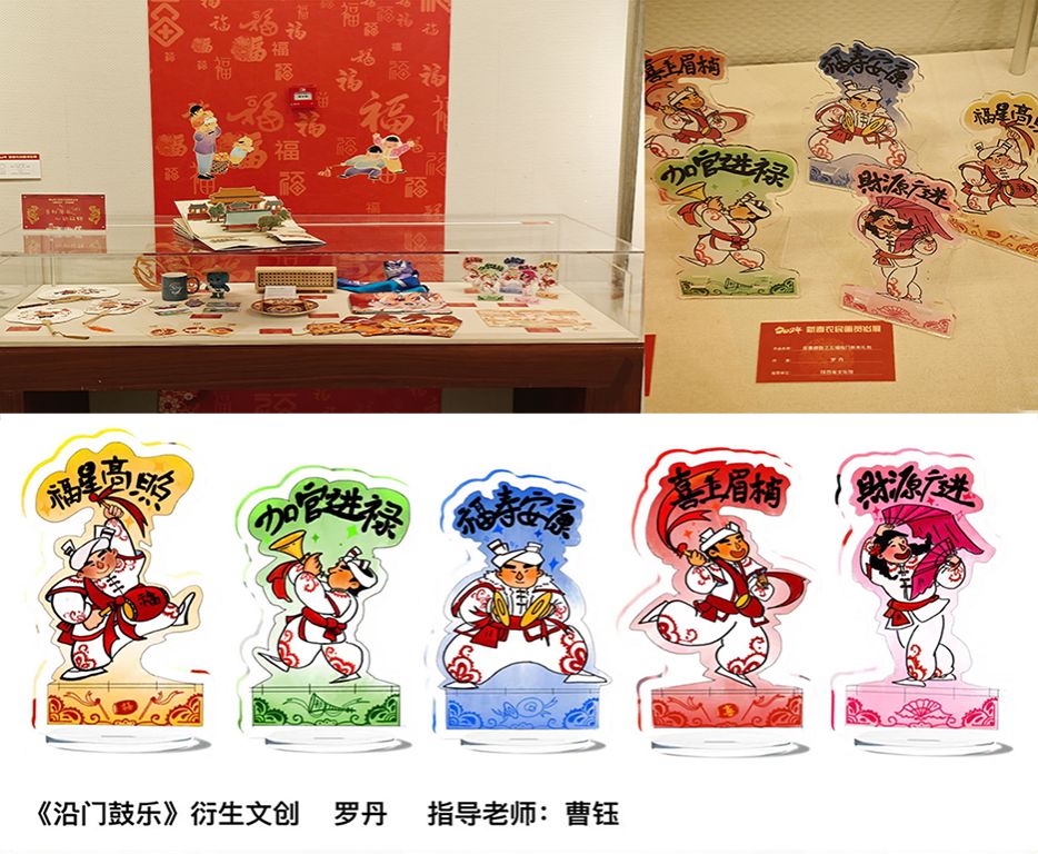 近日,由文化和旅游部全國公共文化發(fā)展中心、中國文化館協(xié)會聯(lián)合主辦的“2024年新春農(nóng)民畫賀歲展”在北京中國國家畫院開幕。由我校設(shè)計與藝術(shù)學(xué)院(絲路文化與傳播學(xué)院)曹鈺老師指導(dǎo)的、動畫21級羅丹同學(xué)創(chuàng)作的《沿門鼓樂》衍生文創(chuàng)設(shè)計作為陜西省唯一選送文創(chuàng)類作品參與本次展覽。同時,動畫專業(yè)羅丹、王凱同學(xué)創(chuàng)作的新年畫《沿門鼓樂》《團圓年》入選賀歲展云上版塊。