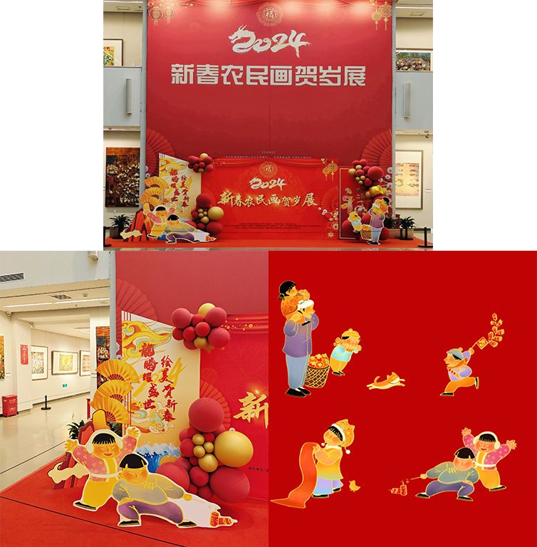 “2024年新春農(nóng)民畫賀歲展”精選了來自全國各地民間藝術(shù)家、文化館干部、美術(shù)院校師生以及業(yè)余農(nóng)民畫愛好者創(chuàng)作的200余幅優(yōu)秀畫作,我校學(xué)子作品脫穎而出,用當(dāng)代新青年視角展示出陜西本土民風(fēng)民俗。值得一提的是,本次全國大展的宣傳物料在設(shè)計之初就特別選取了《沿門鼓樂》中的部分角色造型,羅丹同學(xué)靈動的畫風(fēng)為本次年畫大展的宣傳海報設(shè)計增色不少,展示了我校設(shè)藝學(xué)院多年來在非遺創(chuàng)新、文旅結(jié)合等方面不斷積累的創(chuàng)作成果與傲人成績。