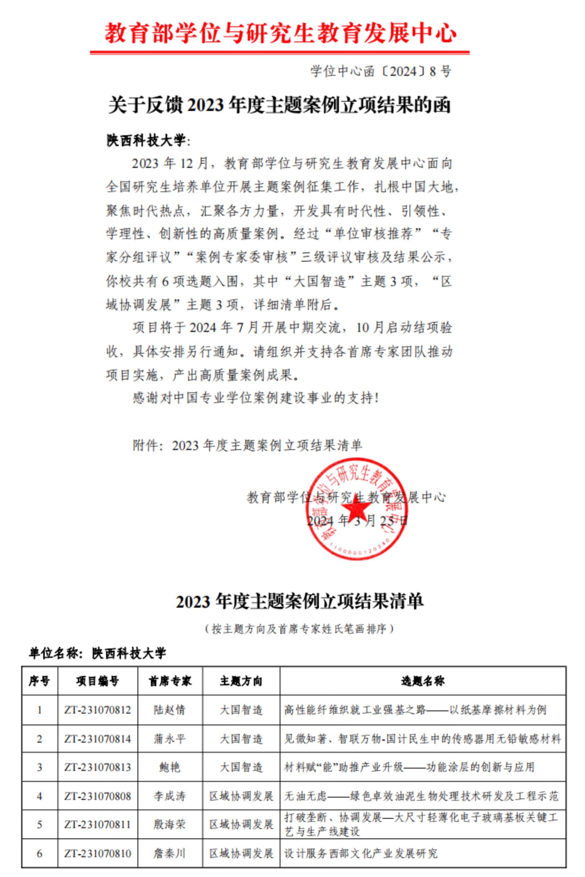 近日,教育部學(xué)位與研究生教育發(fā)展中心發(fā)布2023年度主題案例立項名單,全國1483個申報項目中655個項目獲批立項,立項率為44%,我校申報的6項高質(zhì)量案例全部入選,立項率達(dá)到了100%,立項項目數(shù)和立項率實現(xiàn)了雙突破。