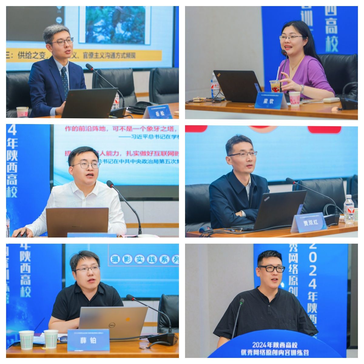 訓(xùn)練營(yíng)采取“報(bào)告交流+集中創(chuàng)作”的形式創(chuàng)新開(kāi)展,共設(shè)置有六場(chǎng)專題講座與一次集中創(chuàng)作。全國(guó)網(wǎng)絡(luò)教育名師、山東理工大學(xué)教授岳松,全國(guó)網(wǎng)絡(luò)教育名師、上海交大網(wǎng)宣辦副主任梁欽,中國(guó)大學(xué)生在線新媒體主編、中教華影首席編輯張洪濤,西安市委宣傳部理論處處長(zhǎng)賈雙紅,陜西省委宣傳部陜西畫報(bào)社(陜西新聞圖片社)圖片總監(jiān)、國(guó)家高級(jí)攝影師薛鉑,“知乎”陜西運(yùn)營(yíng)中心運(yùn)營(yíng)負(fù)責(zé)人龔繼武分別圍繞優(yōu)秀網(wǎng)絡(luò)文化作品選題分析、創(chuàng)作邏輯、呈現(xiàn)技巧、技術(shù)策略等方面開(kāi)展了專題授課和分享交流。全體參訓(xùn)學(xué)員參照選題指南、結(jié)合培訓(xùn)所獲,集中創(chuàng)作了一批原創(chuàng)網(wǎng)絡(luò)文化作品。與會(huì)學(xué)員還在中國(guó)輕工業(yè)博物館、我校承建的陜西高校網(wǎng)絡(luò)思想政治工作中心(陜西省高等學(xué)校思想政治教育研究會(huì)秘書處)進(jìn)行了現(xiàn)場(chǎng)研學(xué)。