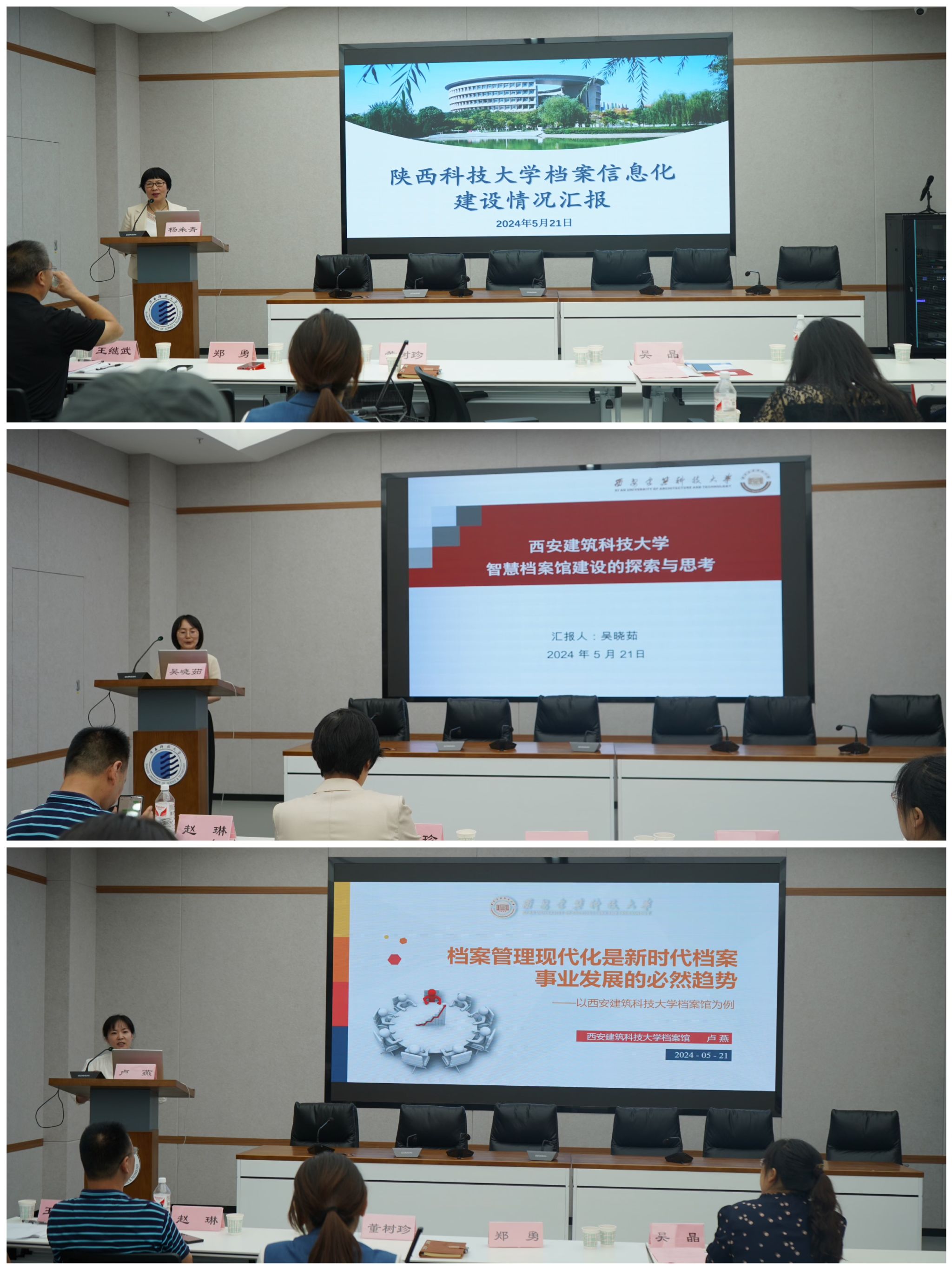 我校檔案館副館長(zhǎng)鄭勇就我校的檔案信息化建設(shè)情況進(jìn)行了匯報(bào),西安建筑科技大學(xué)檔案館吳曉茹、盧燕分別就智慧檔案館建設(shè)和檔案管理現(xiàn)代化的思考及實(shí)踐進(jìn)行了分享。