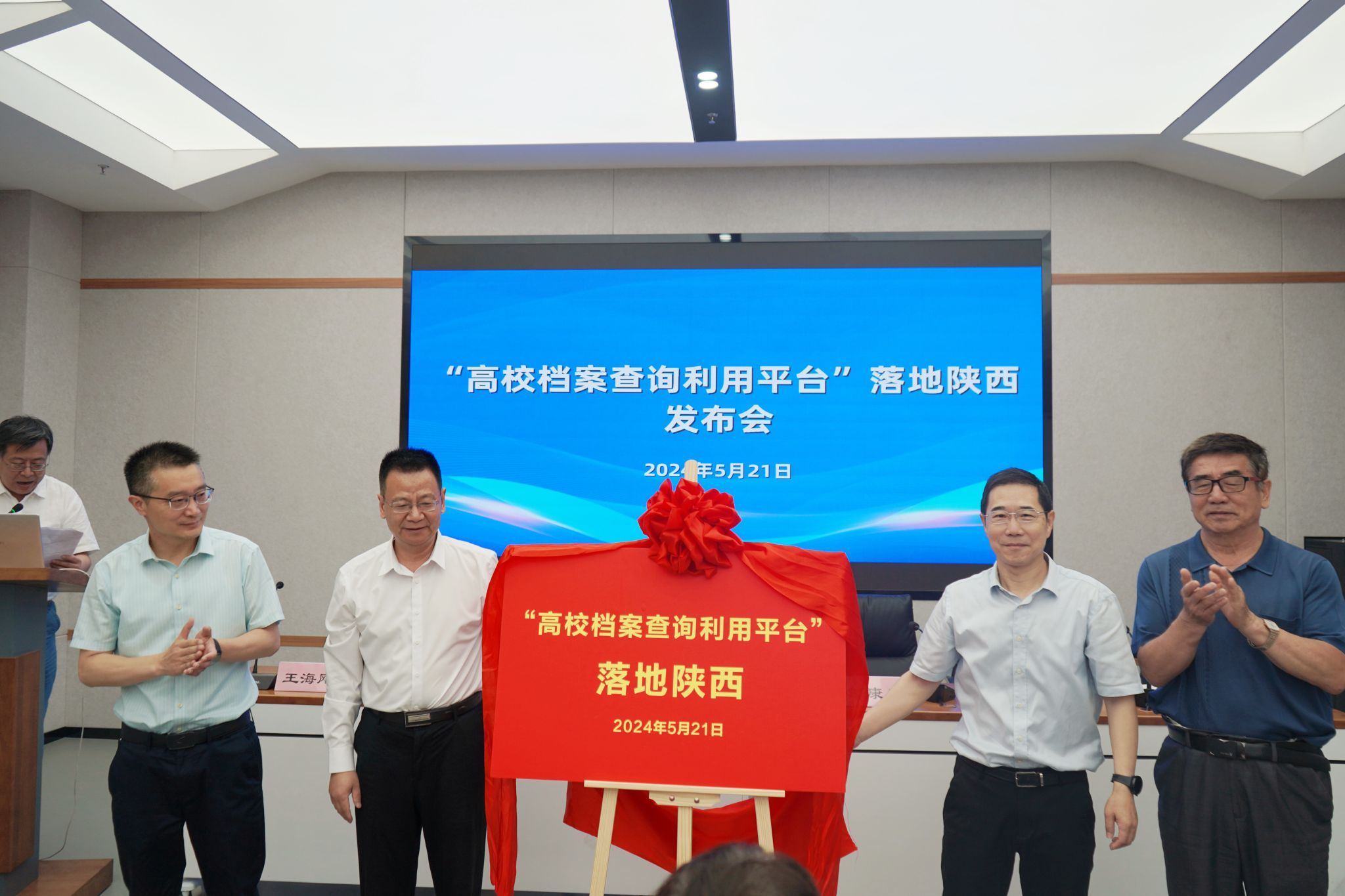 會(huì)議還舉行了“高校檔案查詢利用平臺(tái)”落地陜西發(fā)布會(huì),費(fèi)貴強(qiáng)、王康生、趙琳、吳連書(shū)共同揭牌。