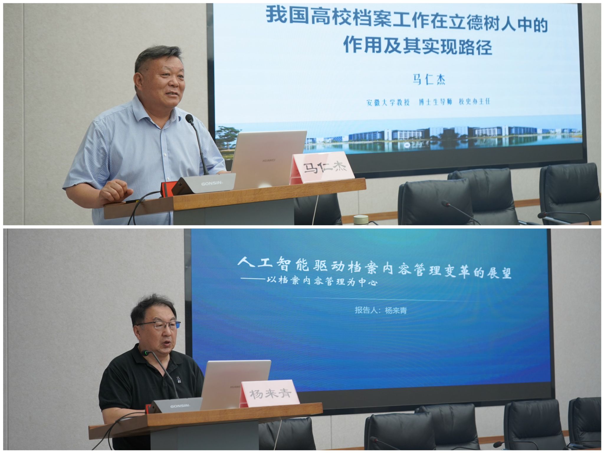 安徽大學(xué)三級(jí)教授、中國(guó)高等教育學(xué)會(huì)理事兼檔案工作分會(huì)副理事長(zhǎng)和學(xué)術(shù)部主任、中國(guó)檔案學(xué)會(huì)理事兼檔案學(xué)基礎(chǔ)理論委員會(huì)學(xué)術(shù)委員馬仁杰做了題為“我國(guó)高校檔案工作在立德樹(shù)人中的作用及其實(shí)現(xiàn)路徑”的報(bào)告。全國(guó)檔案領(lǐng)軍人才、檔案專家山東省檔案學(xué)會(huì)副理事長(zhǎng)、原青島市檔案館原二級(jí)巡視員楊來(lái)青做了題為“人工智能驅(qū)動(dòng)檔案內(nèi)容管理變革的展望”的報(bào)告。