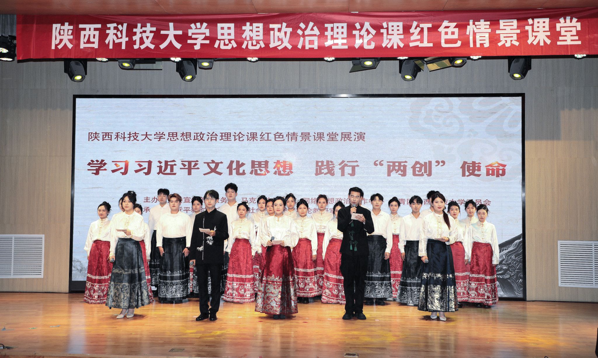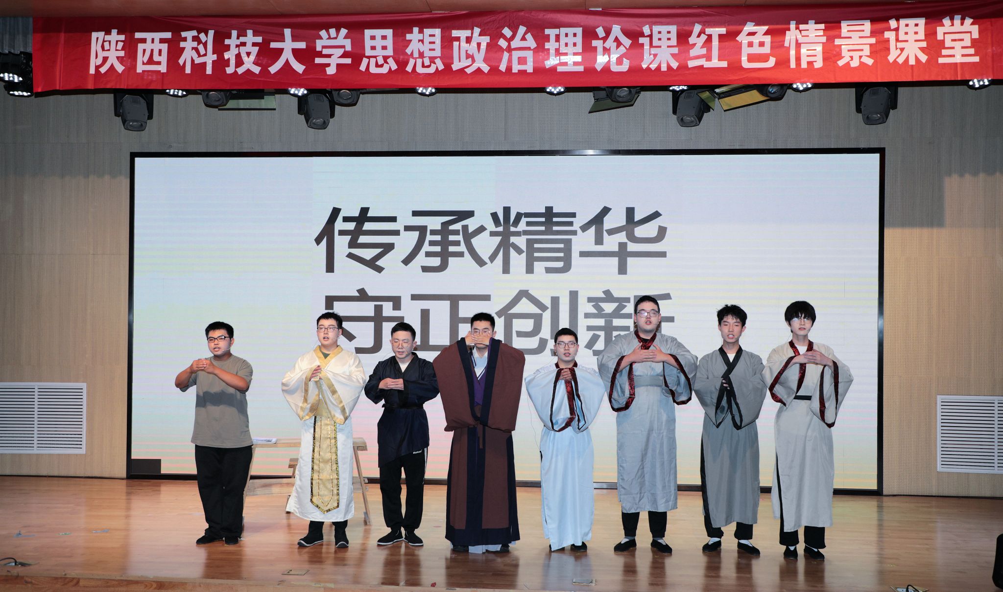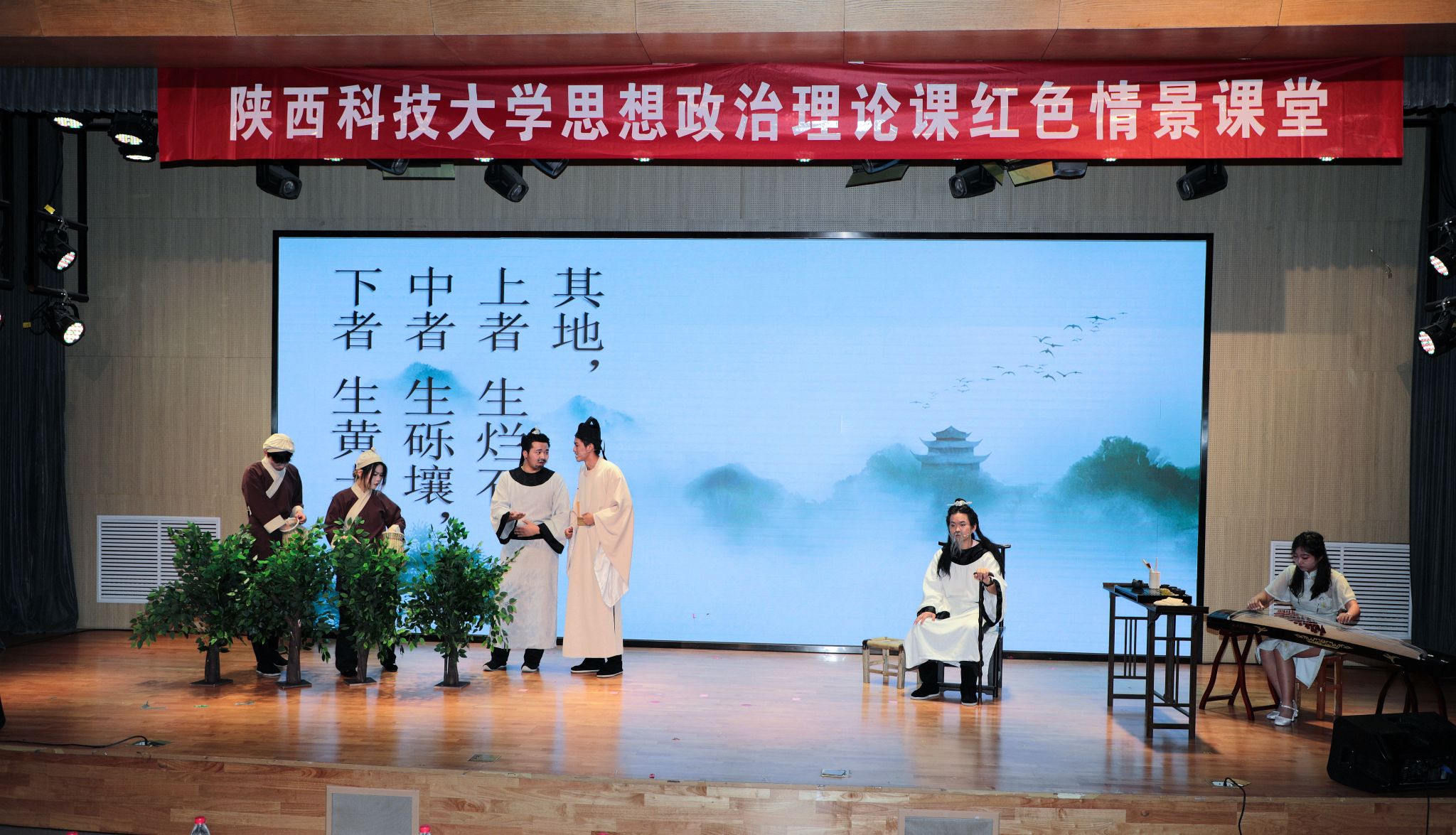 本次紅色情景課堂展演由校黨委宣傳部、教務(wù)處、馬克思主義學(xué)院、網(wǎng)絡(luò)思想政治工作中心、團(tuán)委主辦,習(xí)近平新時(shí)代中國(guó)特色社會(huì)主義思想概論教研室、“三創(chuàng)兩遷”精神鑄魂育人——大學(xué)精神與大學(xué)文化育人研究基地、陜西省中華經(jīng)典誦寫(xiě)講基地(陜西科技大學(xué))承辦。相關(guān)黨群機(jī)構(gòu)負(fù)責(zé)人、各學(xué)院分管教學(xué)工作副院長(zhǎng)、馬克思主義學(xué)院全體教師和部分輔導(dǎo)員、學(xué)生代表參加了活動(dòng)。