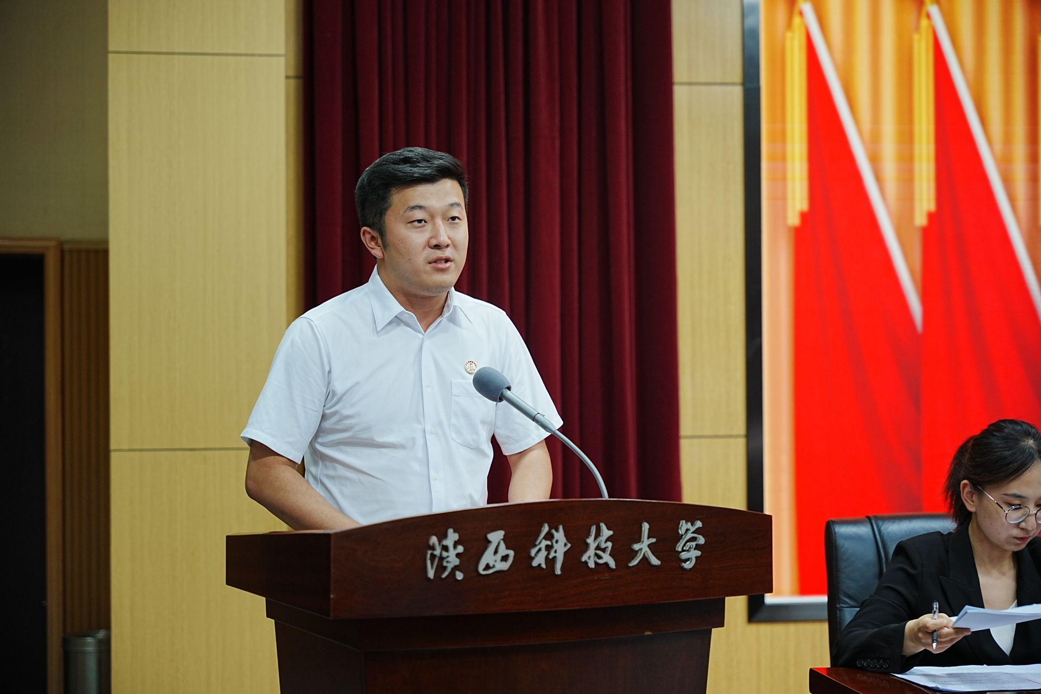 校團(tuán)委書(shū)記李鵬宣讀2023年度陜西科技大學(xué)優(yōu)秀學(xué)院學(xué)生會(huì)、優(yōu)秀學(xué)院研究生會(huì)評(píng)選結(jié)果,并對(duì)受表彰的組織表示祝賀,向長(zhǎng)期以來(lái)支持我校學(xué)生會(huì)、研究生會(huì)工作的老師和同學(xué)們致以感謝。與會(huì)領(lǐng)導(dǎo)、嘉賓為獲獎(jiǎng)集體頒獎(jiǎng)。