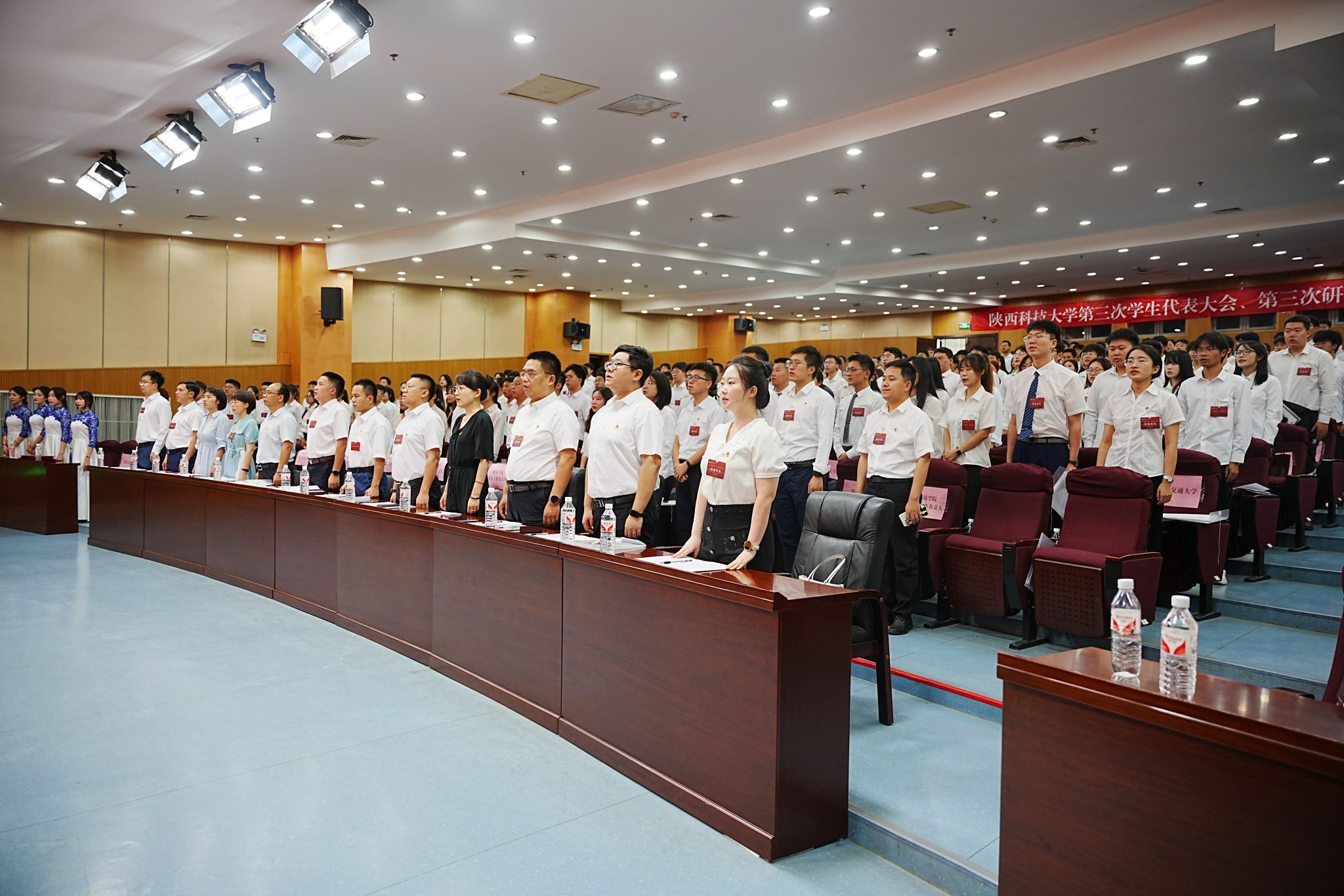 6月29日,陜西科技大學(xué)第三次學(xué)生代表大會(huì)、第三次研究生代表大會(huì)在圖書(shū)館一樓報(bào)告廳召開(kāi)。校黨委副書(shū)記郭強(qiáng)、陜西省學(xué)生聯(lián)合會(huì)主席白怡暄、校黨委學(xué)工部部長(zhǎng)李曉、校黨委研工部部長(zhǎng)陸趙情、校團(tuán)委書(shū)記李鵬、各相關(guān)職能部門(mén)負(fù)責(zé)人、各學(xué)院學(xué)生工作負(fù)責(zé)人、學(xué)院團(tuán)委書(shū)記,省內(nèi)部分兄弟院校學(xué)生會(huì)、研究生會(huì)代表出席大會(huì),199名學(xué)代會(huì)代表、57名研代會(huì)代表參加大會(huì)。會(huì)議由校團(tuán)委副書(shū)記王雪婧主持。