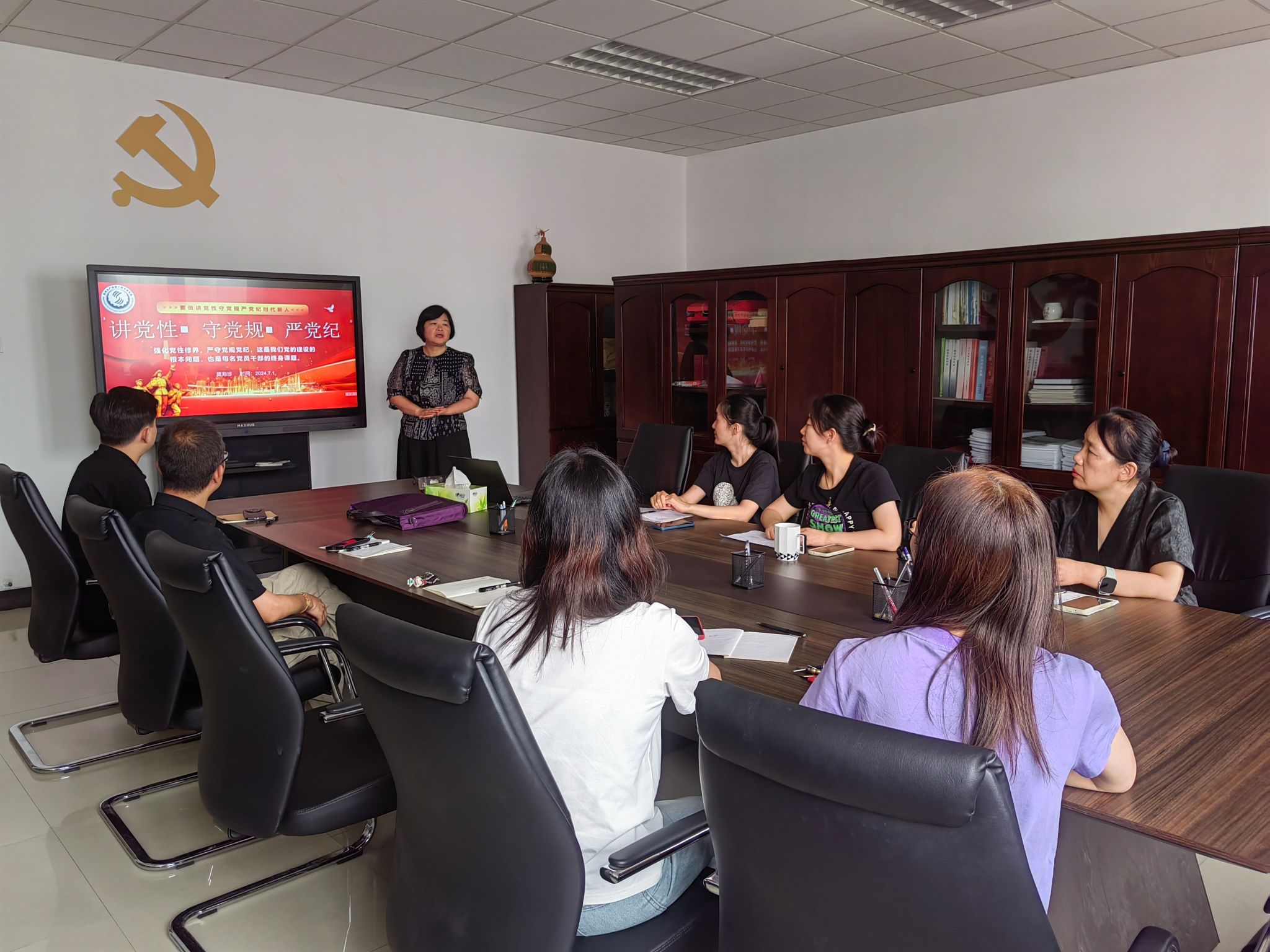 7月1日支部召開全體黨員會議,跟進學(xué)習(xí)習(xí)近平總書記在主持中央政治局第十五次集體學(xué)習(xí)時發(fā)表的重要講話《全面從嚴(yán)治黨永遠在路上,黨的自我革命永遠在路上》、《黨的十八屆三中全會以來文化體制改革成就綜述》,進一步深化紀(jì)律學(xué)習(xí)教育和增強文化自信。隨后,支部書記杜致博講授了題為《增強紀(jì)律意識、提高黨性修養(yǎng)》黨課,要求黨員深刻認(rèn)識習(xí)近平總書記關(guān)于全面加強黨的紀(jì)律建設(shè)的重要論述的重大意義、全面落實其實踐要求,強調(diào)要在學(xué)習(xí)工作生活中嚴(yán)格恪守“六大紀(jì)律”,始終保持忠誠干凈擔(dān)當(dāng)?shù)恼伪旧?,努力為學(xué)校事業(yè)發(fā)展做出更大貢獻。