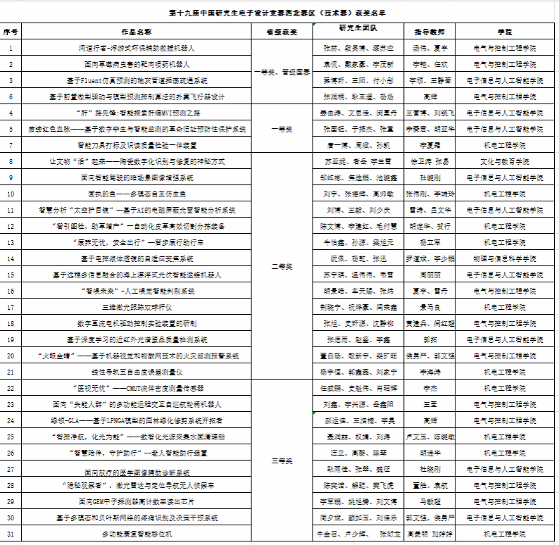 前期,研究生院(研工部)、電子信息與人工智能學(xué)院組織了校級(jí)選拔賽和多次輔導(dǎo),邀請(qǐng)校外國(guó)內(nèi)頂級(jí)專(zhuān)家評(píng)審輔導(dǎo),經(jīng)過(guò)精心組織、評(píng)審考核及實(shí)物作品的不斷調(diào)試完善,最終選拔并推薦43支隊(duì)伍參加西北賽區(qū)技術(shù)賽。