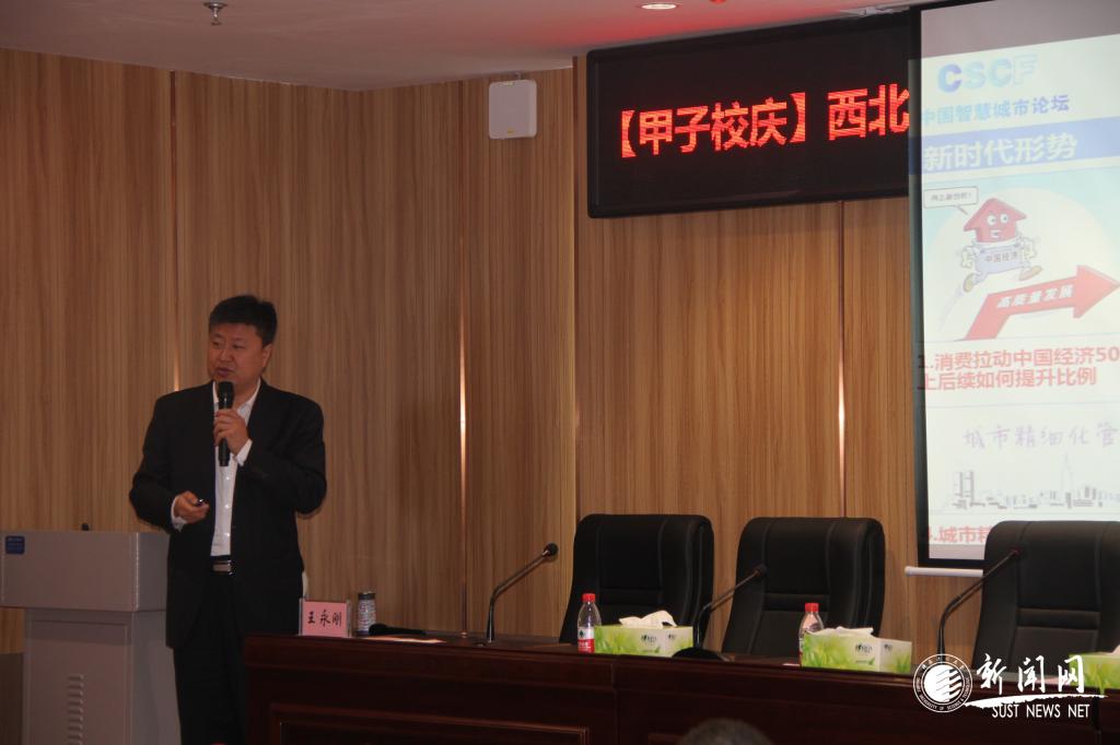 在西部智慧城市論壇上,經(jīng)管學(xué)院副院長(zhǎng)薛儉、論壇副秘書(shū)長(zhǎng)王永剛分別做主旨報(bào)告。薛儉介紹了我校西北智慧城市研究中心的發(fā)展思路,下一步將通過(guò)產(chǎn)學(xué)研的結(jié)合,接洽地方政府,調(diào)研地方需求,制定解決方案,推動(dòng)西北智慧城市的創(chuàng)新發(fā)展。王永剛介紹了中國(guó)智慧城市發(fā)展歷史、中央支持政策及新時(shí)代智慧城市發(fā)展趨勢(shì)和模式。蔡宏超作為企業(yè)代表向研究中心成立表示祝賀,并表示將與中心一道共同推動(dòng)西北智慧城市的創(chuàng)新發(fā)展。