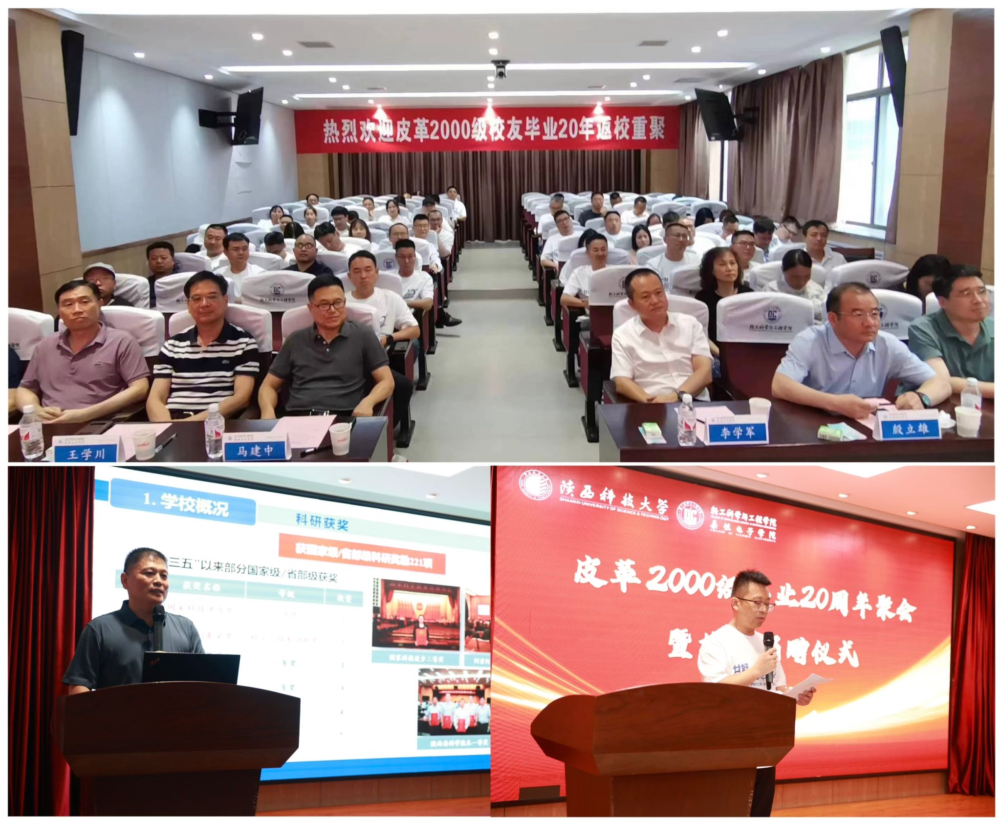 7月13日下午,輕工科學(xué)與工程學(xué)院(柔性電子學(xué)院)輕化工程(皮革)2000級(jí)校友畢業(yè)20周年歡聚交流暨校友捐贈(zèng)儀式在學(xué)院學(xué)術(shù)報(bào)告廳舉行。校黨委副書記李學(xué)軍,輕工技術(shù)與工程學(xué)科帶頭人、原校長馬建中,輕工技術(shù)與工程學(xué)科帶頭人、原副校長王學(xué)川,校友總會(huì)辦公室主任殷立雄,輕工學(xué)院部分班子成員及皮革工程系教師代表出席了本次活動(dòng)。捐贈(zèng)儀式由輕工學(xué)院院長呂斌主持。