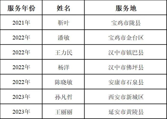 近日,陜西省大學(xué)生志愿服務(wù)西部計(jì)劃項(xiàng)目辦根據(jù)全國(guó)項(xiàng)目辦有關(guān)工作要求,經(jīng)各級(jí)項(xiàng)目辦考核鑒定,評(píng)定出陜西省2023-2024年度大學(xué)生志愿服務(wù)西部計(jì)劃考核優(yōu)秀等次志愿者名單,我校西部計(jì)劃志愿者靳葉、潘敏、王力民、楊洋、陳曉敏、孫凡哲、王麗麗共計(jì)7人獲此榮譽(yù)。