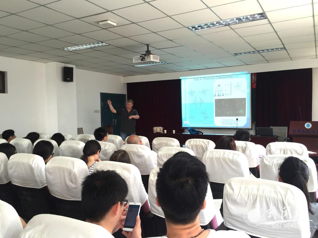 Carl Redshaw 教授做了題為“The coordination chemistry toolbox”的學(xué)術(shù)報(bào)告。講解了他以配合物為研究對(duì)象,在可用于生物降解聚合物的新型催化劑、金屬成像/抗癌劑、氣體儲(chǔ)存、水分解和傳感器方面開展的研究工作及取得的研究成果。