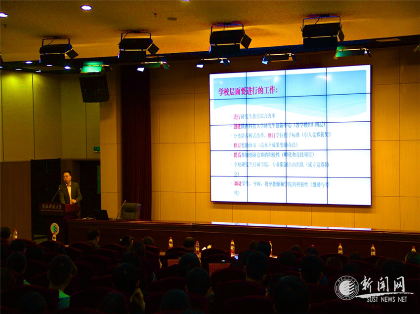 蒲永平以“打造創(chuàng)新實踐平臺,提升研究生培養(yǎng)質(zhì)量”為主題,介紹了全國研究生創(chuàng)新實踐系列大賽的背景和賽事變化,分析了我校近年來參加國家級賽事的成績和不足,并對今后如何提高研究生創(chuàng)新實踐能力的措施和工作做了介紹。蒲永平在報告中指出,今年是我校研究生教育綜合改革措施實施的關(guān)鍵性年份。學(xué)校針對我校研究生創(chuàng)新創(chuàng)業(yè)教育,先后建立了5個研究生創(chuàng)新實踐協(xié)會和1個研究生創(chuàng)新實踐中心。今后將分門別類地對研究生進(jìn)行培養(yǎng),將研究生的學(xué)科競賽成績引入學(xué)位授予標(biāo)準(zhǔn)和研究生獎助體系,在全校范圍內(nèi)打破學(xué)院、專業(yè)限制。針對研究生申請創(chuàng)新實踐項目,學(xué)校提倡跨學(xué)院跨學(xué)科自由組隊,以此來調(diào)動學(xué)生、導(dǎo)師、指導(dǎo)教師和學(xué)院四方的積極性。