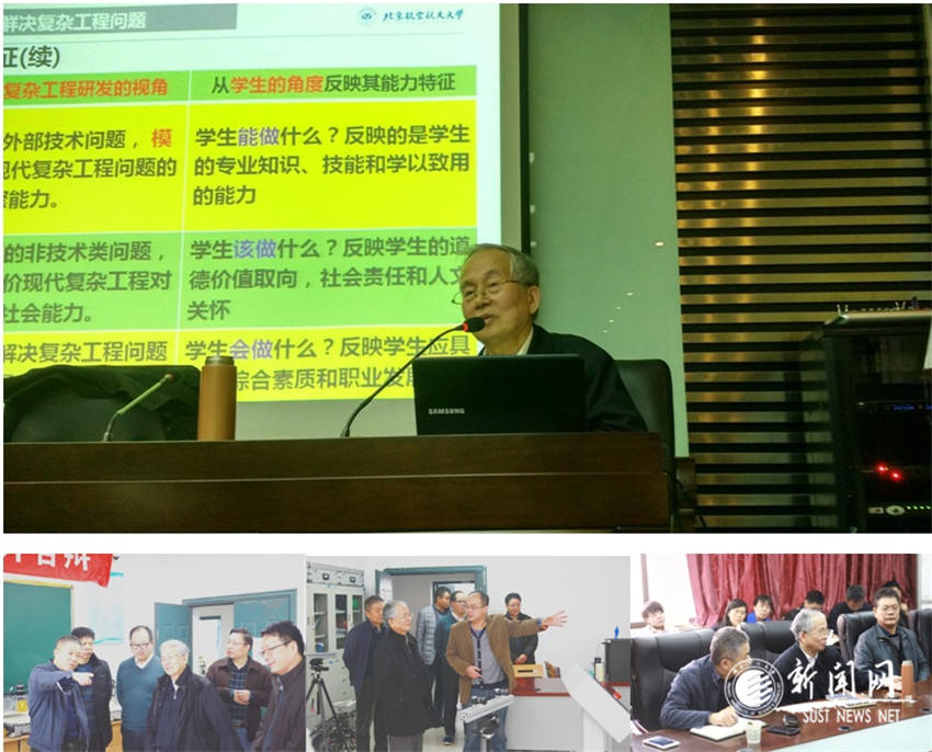 申功璋從我國高等工程教育認(rèn)證的歷程談起,介紹了工程專業(yè)認(rèn)證的必要性、工程專業(yè)認(rèn)證的標(biāo)準(zhǔn)體系、關(guān)鍵指標(biāo)的解讀以及工程專業(yè)認(rèn)證工作開展的注意事項等,并對以能力為核心的課程體系構(gòu)建、復(fù)雜工程問題解決能力的培養(yǎng)等問題,進(jìn)行了深入分析;他還結(jié)合目前專業(yè)認(rèn)證開展的實際情況,分析了在認(rèn)證工作中可能會產(chǎn)生的誤解及存在的問題,并從畢業(yè)要求達(dá)成度、課程目標(biāo)達(dá)成度、持續(xù)改進(jìn)工作機制等方面提出了建議,報告會共進(jìn)行3個半小時。第二天上午,申功璋在黨宏社的陪同下參觀了學(xué)院實驗室,并對學(xué)院各專業(yè)負(fù)責(zé)人、自動化和電子信息工程專業(yè)的老師就申請書撰寫中的問題進(jìn)行了指導(dǎo)。