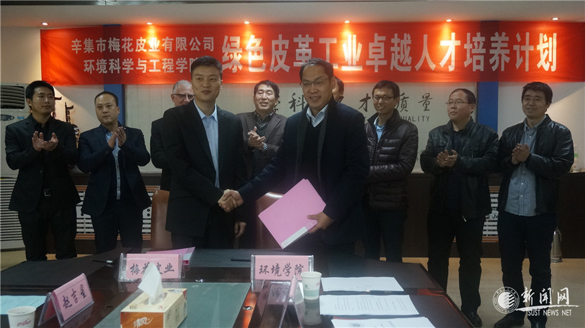 11月17日,環(huán)境科學(xué)與工程學(xué)院與辛集市梅花皮業(yè)有限公司共同舉辦的“綠色皮革工業(yè)卓越人才培養(yǎng)計(jì)劃”簽約儀式在1B312會(huì)議室舉行。梅花皮業(yè)總經(jīng)理董賀翔、研發(fā)技術(shù)總工Daniel、企管部經(jīng)理羅恒一、趙吉星,環(huán)境學(xué)院全體黨政領(lǐng)導(dǎo)、教師代表、輔導(dǎo)員及學(xué)生代表參加了簽約儀式。會(huì)議中環(huán)境學(xué)院首項(xiàng)企業(yè)獎(jiǎng)學(xué)金——“梅花獎(jiǎng)學(xué)金”正式誕生。