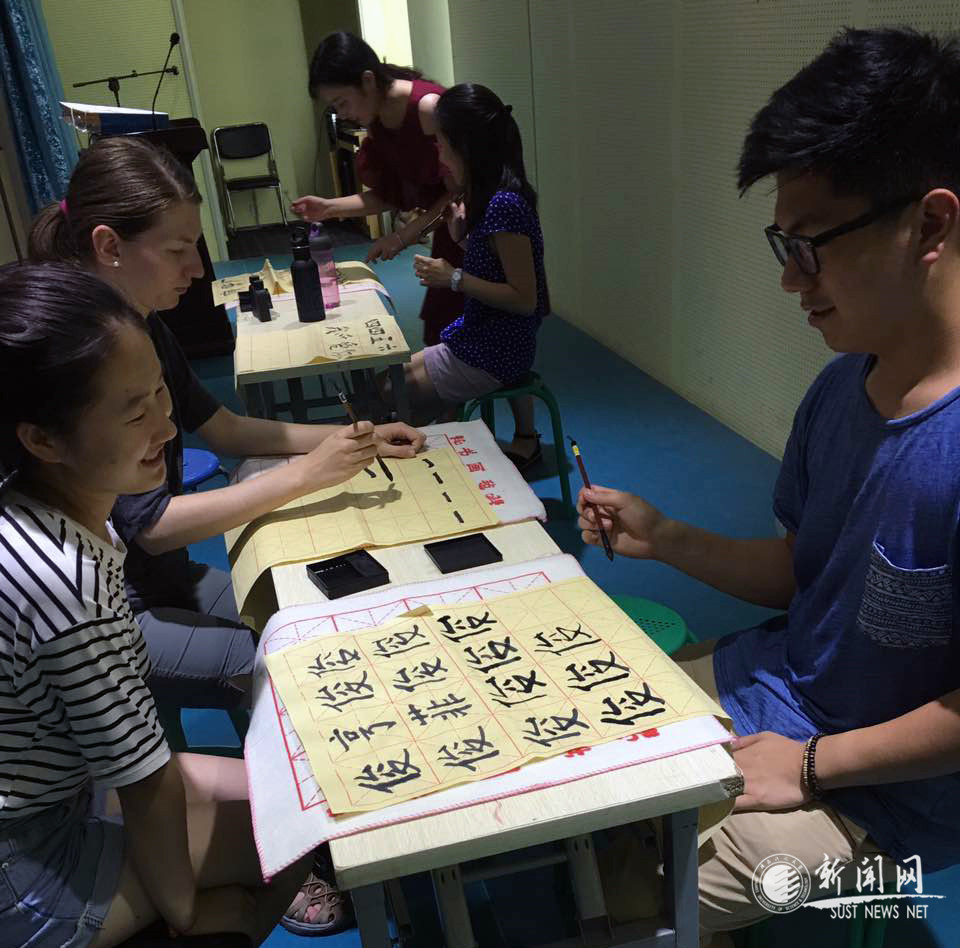 此次夏令營(yíng)從7月19日開(kāi)始,為期23天。期間,中方18名學(xué)生與加方18名學(xué)生以一中一加“結(jié)對(duì)子”的形式共同學(xué)習(xí)和生活。中加雙方領(lǐng)隊(duì)老師密切合作,精心設(shè)計(jì)了豐富多彩的夏令營(yíng)課程和文化體驗(yàn)活動(dòng)。每天早晨,中加學(xué)生分別選取與各自文化相關(guān)的一個(gè)話題進(jìn)行講解與展示,中方學(xué)生還分成不同小組講授數(shù)字、稱呼等簡(jiǎn)單的漢語(yǔ)課程。下午,中加學(xué)生以小組為單位,教授自己擅長(zhǎng)的一項(xiàng)才藝,如舞蹈、歌唱、樂(lè)器、書(shū)法等。除日常文化課程外,還穿插了形式多樣的文化體驗(yàn)活動(dòng)。組織學(xué)生參觀了我校校史館、輕工科學(xué)與工程學(xué)院造紙印刷史展館、皮革特色展館、設(shè)計(jì)與藝術(shù)學(xué)院特色展廳;外出參觀了兵馬俑、西安鐘樓,品嘗回民街美食,游覽翠華山,體驗(yàn)農(nóng)家樂(lè);在校內(nèi)舉辦了具有中西文化特色的生日晚會(huì)、農(nóng)歷新年晚會(huì)、圣誕節(jié)晚會(huì)、中加夏令營(yíng)標(biāo)志設(shè)計(jì)競(jìng)賽、中加夏令營(yíng)話劇表演競(jìng)賽,觀看了具有中西方文化特色的電影等多項(xiàng)主題活動(dòng)。