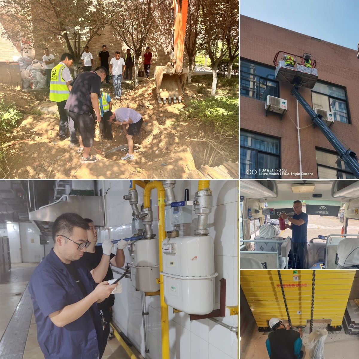 堅守底線,安全穩(wěn)定放首位。集團始終將安全穩(wěn)定放在第一位,嚴格落實各項安全管理制度,嚴格值班值守,常態(tài)化做好日常安全檢查督查,科學調(diào)整高溫天氣室外作業(yè)時間,先后對校內(nèi)6臺變壓器及部分高壓電纜進行耐壓、絕緣預防性試驗,合理規(guī)劃校園和沁園小區(qū)電動自行車充電樁區(qū)域建設(shè),時刻關(guān)注食品安全、燃氣安全和生產(chǎn)安全,確保各項工作順利開展。