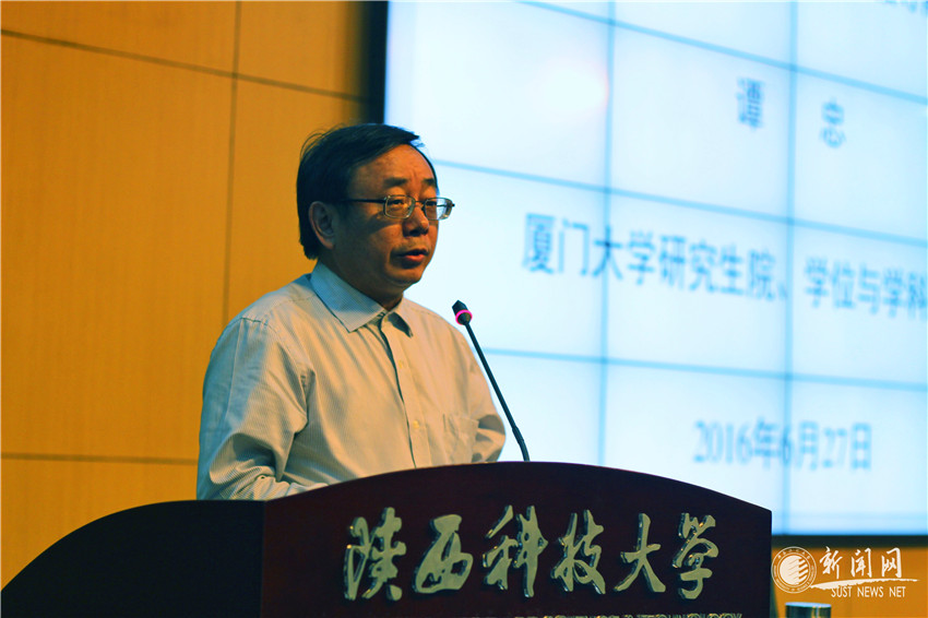 6月27日下午,廈門大學(xué)研究生院副院長(zhǎng)、學(xué)位建設(shè)辦公室主任譚忠教授應(yīng)邀做客我?!懊麕熣搲?,為我校研究生導(dǎo)師做了題為“如何提高研究生導(dǎo)師指導(dǎo)能力”的報(bào)告。報(bào)告由教師發(fā)展中心常務(wù)副主任徐永建教授主持。研究生院領(lǐng)導(dǎo)、部分學(xué)院分管研究生工作的副院長(zhǎng)參加,西安工業(yè)大學(xué)的相關(guān)教師代表也專程來(lái)聆聽了報(bào)告。
