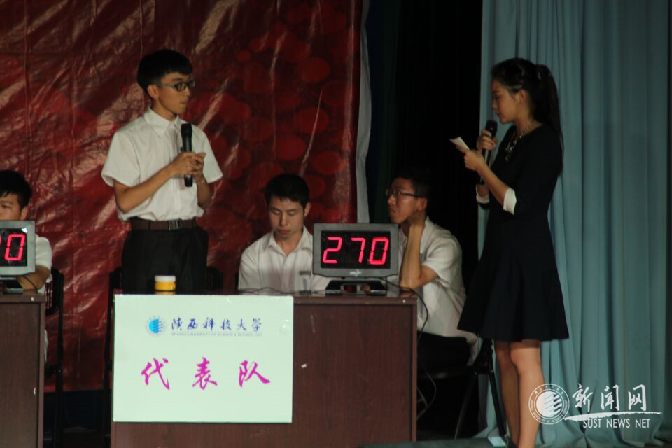 此次大賽由陜西省化學(xué)會(huì)主辦,西北大學(xué)化學(xué)與材料科學(xué)學(xué)院承辦。西北大學(xué)、西安科技大學(xué)、西安石油大學(xué)、西安建筑科技大學(xué)、陜西師范大學(xué)和我校進(jìn)入決賽。競賽共設(shè)置了五大題型:必答題、快速競答題、搶答題、陷阱題以及風(fēng)險(xiǎn)題,題型多為生活中有關(guān)的化學(xué)知識(shí),旨在讓學(xué)生更好的了解化學(xué)在生活中的運(yùn)用。