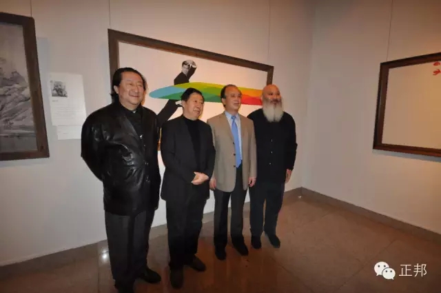 展覽中,國(guó)家文化部副部長(zhǎng)丁偉、中國(guó)美術(shù)家協(xié)會(huì)主席劉大為、中國(guó)國(guó)家畫(huà)院院長(zhǎng)楊曉陽(yáng)在陳丹先生的作品前合影留念。