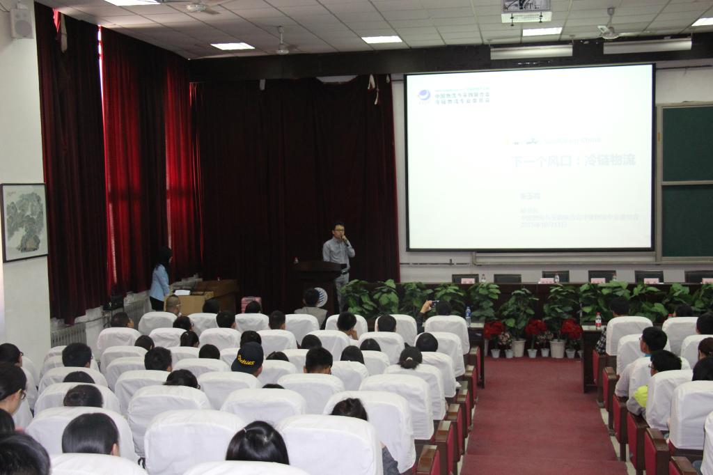 此次活動(dòng)的冠名單位——開(kāi)利運(yùn)輸冷凍有限公司中國(guó)區(qū)銷售/售后/市場(chǎng)部總經(jīng)理高戈,作了題為《食品安全與冷藏運(yùn)輸》的報(bào)告,從冷鏈物流裝備的角度介紹了開(kāi)利公司冷藏裝備發(fā)展情況、國(guó)內(nèi)冷藏運(yùn)輸市場(chǎng)狀況及前景,最后簡(jiǎn)要介紹了公司對(duì)人才的培養(yǎng)政策及要求,為學(xué)生進(jìn)入外企工作提出了良好的建議。