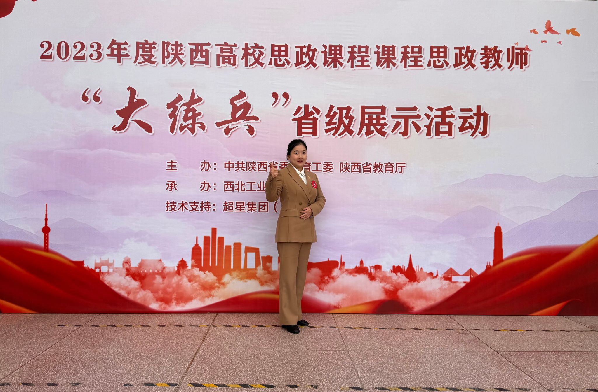 在2023年陜西高校思政課程課程思政教師“大練兵”中,我積極備賽,精心準(zhǔn)備,反復(fù)打磨,將平時的教學(xué)心得和經(jīng)驗融入到比賽中,取得了“教學(xué)標(biāo)兵”的榮譽稱號,這也是我踐行教育家精神的一個收獲。