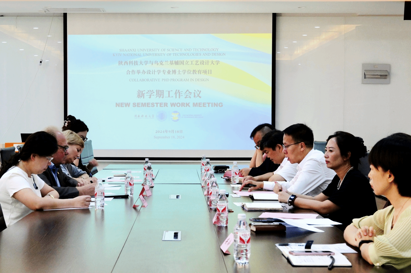 9月18日上午,我校與烏克蘭基輔國(guó)立工藝設(shè)計(jì)大學(xué)合作舉辦設(shè)計(jì)學(xué)專業(yè)博士學(xué)位教育項(xiàng)目新學(xué)期工作會(huì)議在設(shè)藝學(xué)院召開。烏克蘭基輔國(guó)立工藝設(shè)計(jì)大學(xué)校長(zhǎng)伊萬(wàn)·格里什琴科一行4人,陜西科技大學(xué)副校長(zhǎng)蒲永平、國(guó)際處和設(shè)藝學(xué)院領(lǐng)導(dǎo)班子以及相關(guān)工作人員參加會(huì)議。