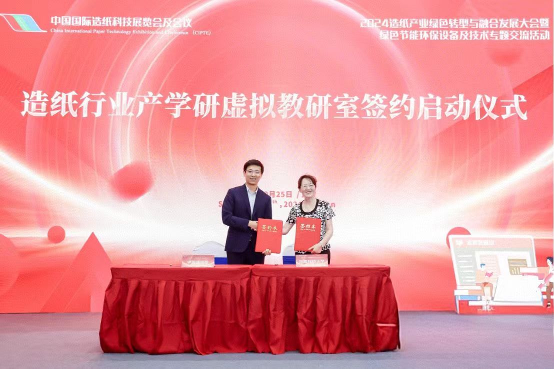 9月25日,在“2024造紙產(chǎn)業(yè)綠色轉(zhuǎn)型與融合發(fā)展大會”上,教育部首批輕化工程專業(yè)虛擬教研室負責(zé)人、我校張美云教授與中國制漿造紙研究院常務(wù)副總經(jīng)理田超在武漢國際會議中心共同簽署了共建虛擬教研室的合作協(xié)議。雙方的戰(zhàn)略合作有利于充分發(fā)揮國家級專業(yè)媒體和高等院校聯(lián)合體的資源優(yōu)勢,有利于深化產(chǎn)、學(xué)、研一體化的人才培養(yǎng)模式改革,有利于為造紙行業(yè)培養(yǎng)有創(chuàng)新意識高素質(zhì)的工程技術(shù)人才。