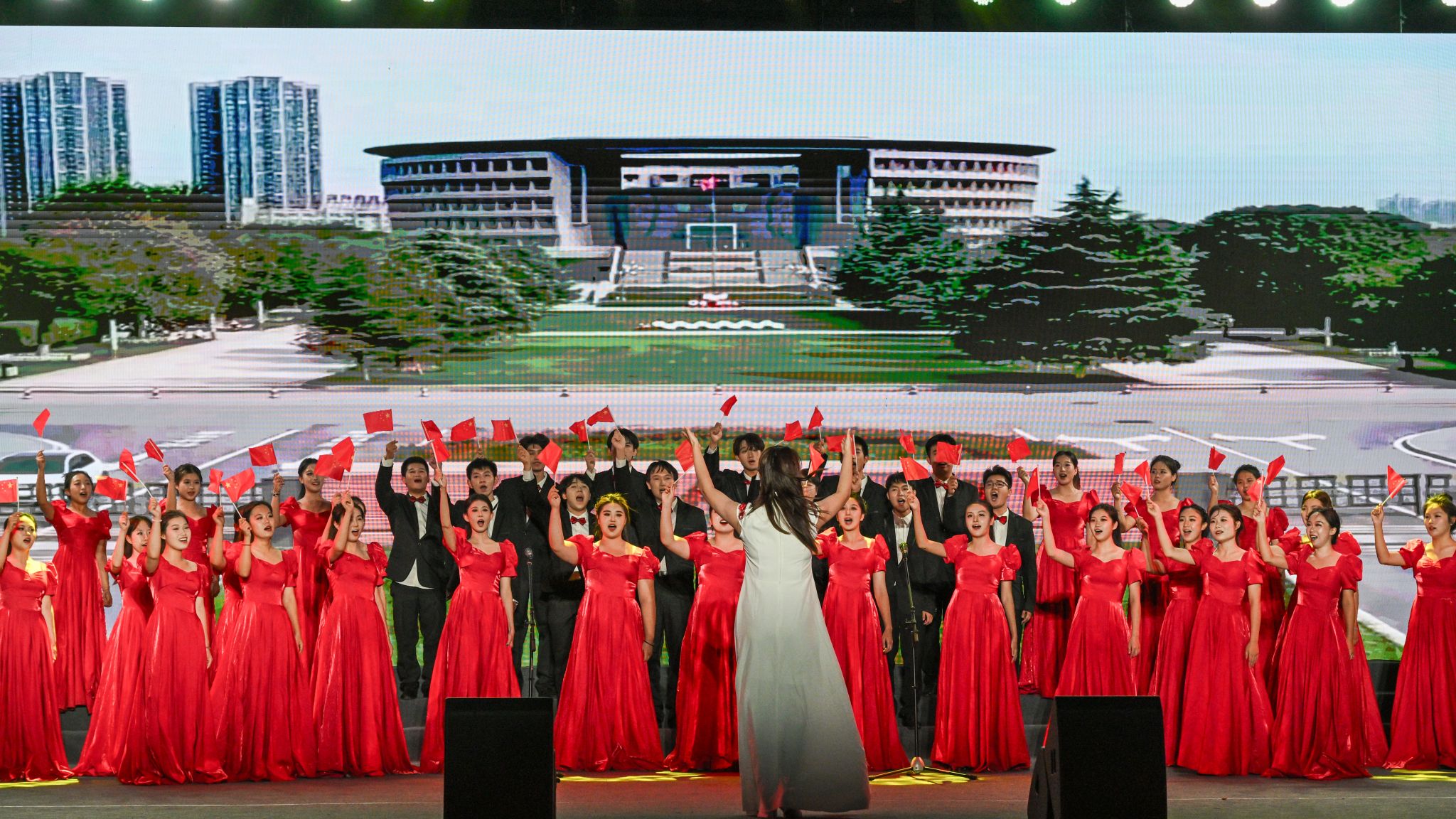 第三篇章“強(qiáng)國有我”中,舞蹈《海舞潮歌》中以情感為靈魂,以民舞的藝術(shù)形式演繹著文化的傳承和表達(dá);歌曲《青春站位》由退伍大學(xué)生士兵和國旗護(hù)衛(wèi)隊(duì)學(xué)生演出,生動(dòng)展示了“有為青年,參軍報(bào)國”的青春風(fēng)采。校歌《遠(yuǎn)航》、《歌唱祖國》將晚會(huì)推向了高潮,強(qiáng)基固本、蓄勢(shì)賦能,新征程上,奮發(fā)向上的科大人將不忘初心,賡續(xù)前行,在學(xué)校第三次黨代會(huì)精神的指引下,在投身教育強(qiáng)國建設(shè),推動(dòng)學(xué)校高質(zhì)量發(fā)展的征程上遠(yuǎn)航!