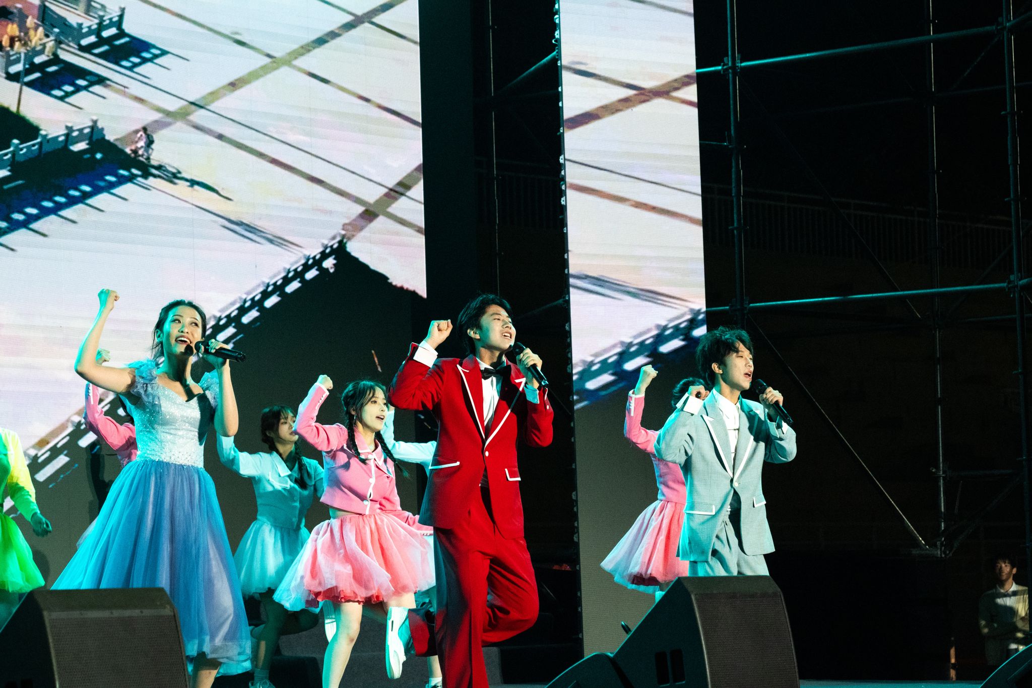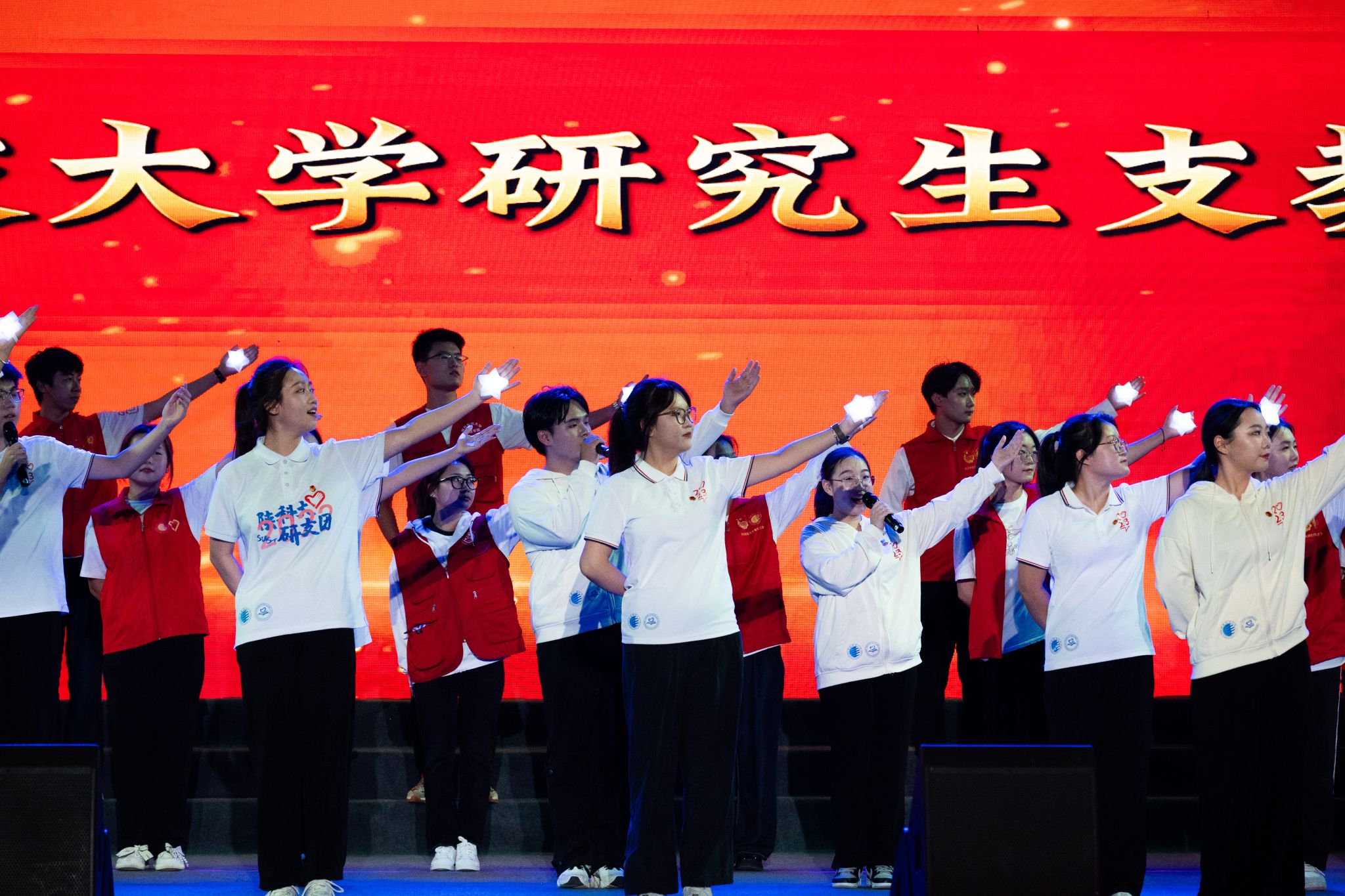 第一篇章“理想召喚”中,朗誦《榜樣的力量》以鏗鏘有力的聲音道出一個(gè)個(gè)一心為民的生動(dòng)故事,朗誦者們和現(xiàn)場(chǎng)觀眾一起追尋榜樣的足跡,感受榜樣的力量;表演唱《“一帶一路”走起來》由中外學(xué)生代表合力演唱,呈現(xiàn)出“一帶一路”國家人民友好交流、民心相通,凝心聚力共創(chuàng)幸福生活的美好畫面;情景音樂劇《落在我生命里的一束光》通過溫馨的支教點(diǎn)滴展現(xiàn)新時(shí)代青年扎根西部、助力基層教育事業(yè)的使命與擔(dān)當(dāng),真正用一年不長的時(shí)間,做一件終生難忘的事。